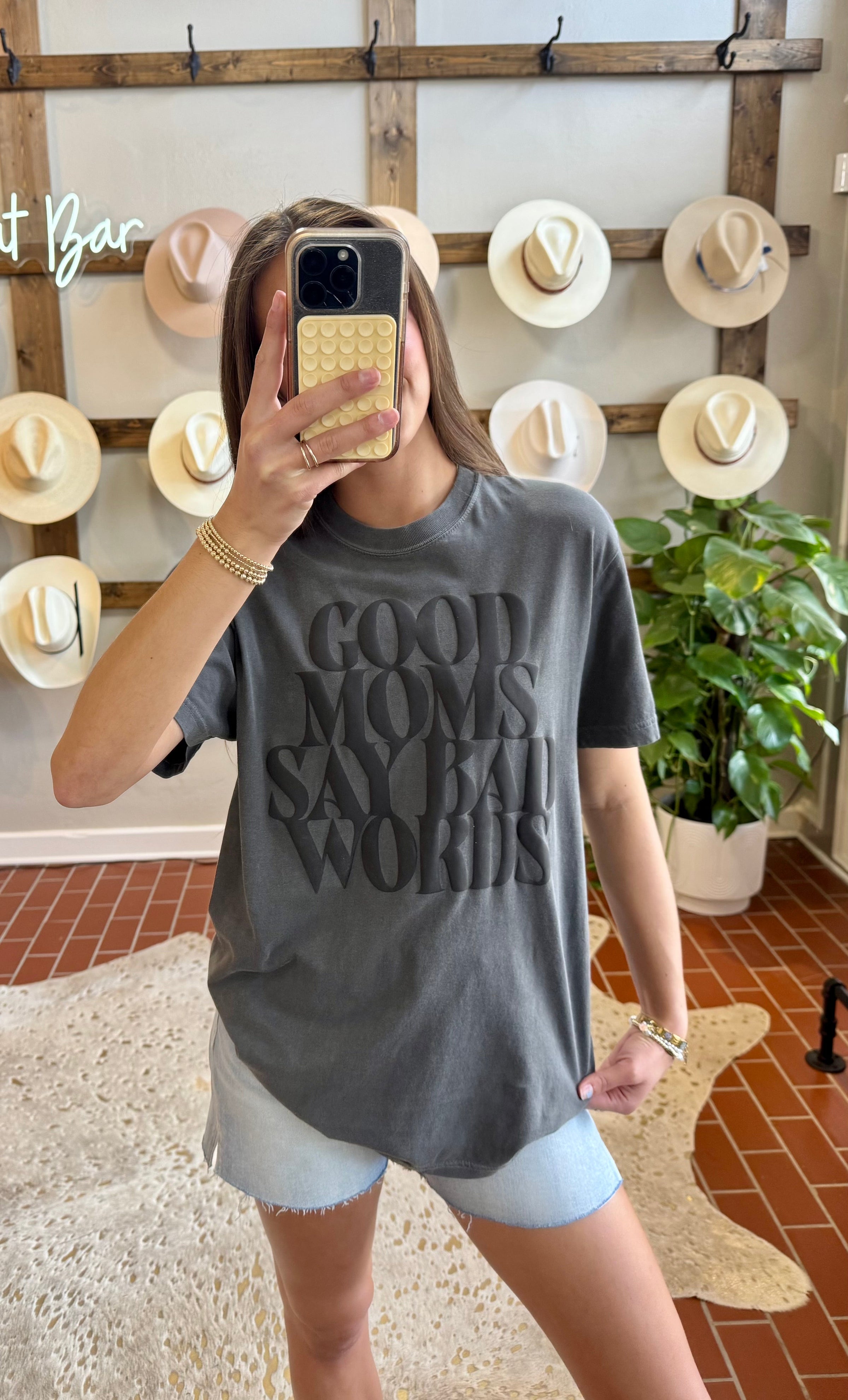 Let loose with humor and honesty in this playful Good Moms Say Bad Words Tee. Printed on a soft, breathable Comfort Colors shirt with bold black puff print, it's the perfect way to celebrate real motherhood—no filter required. Whether you're a seasoned mom who's earned her stripes or someone who appreciates authentic, witty style, this tee delivers laughs and comfort in equal measure. Wear it proudly and let everyone know you're keeping it real.