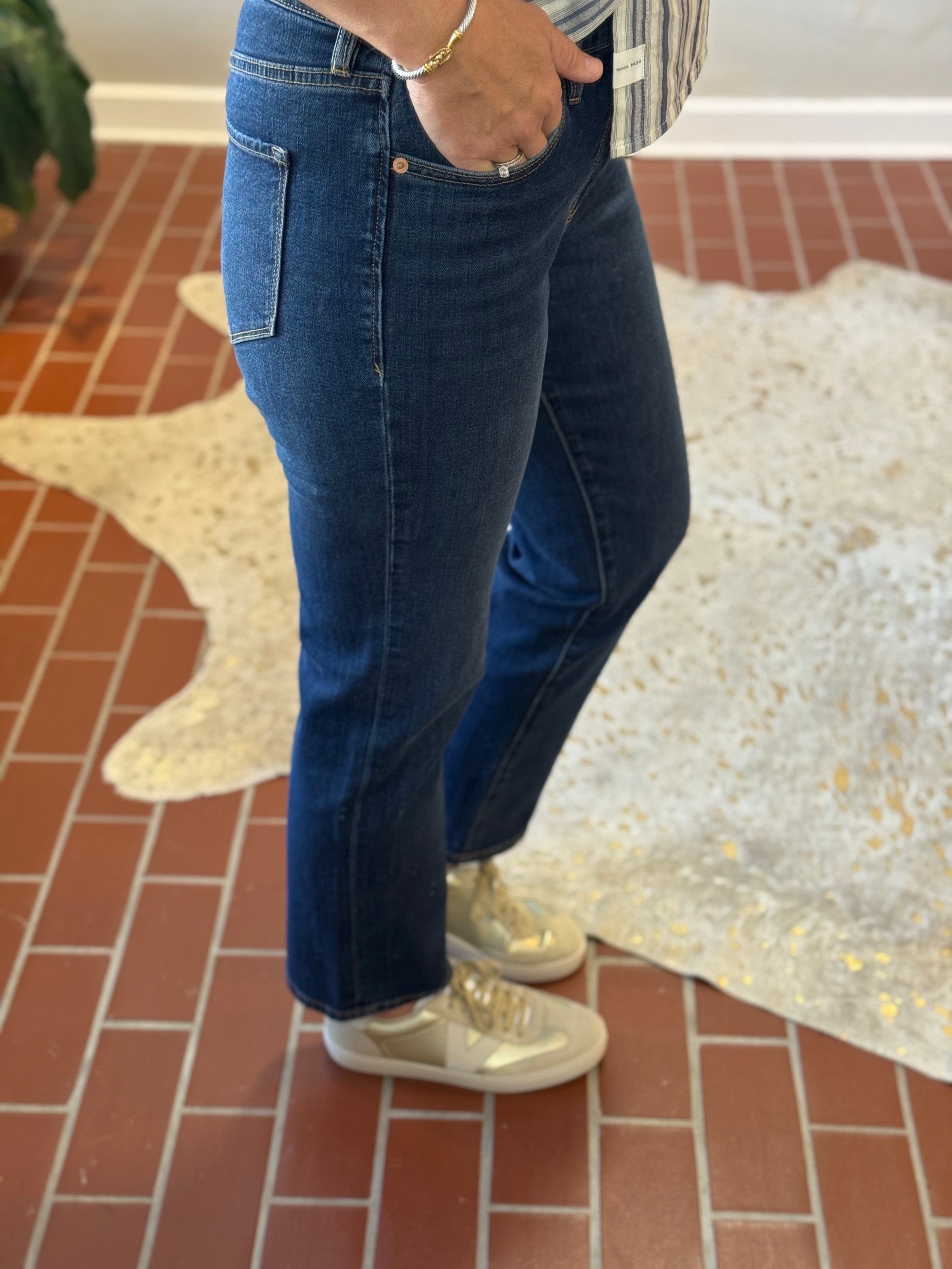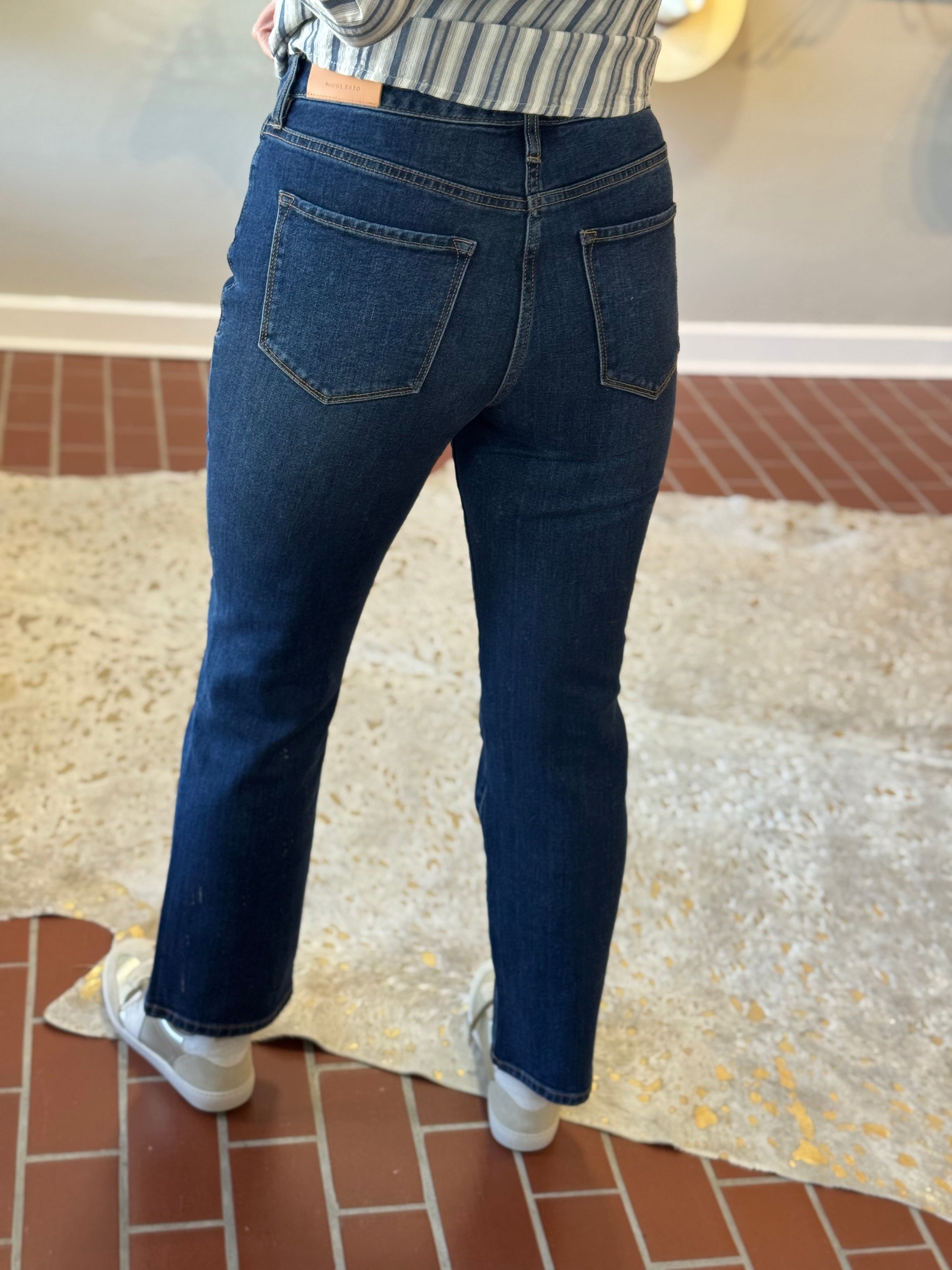 The Anika straight leg jean in Moonlight wash is tailored from a luxurious cotton-spandex blend, promising a perfect stretch for comfortable all-day wear.