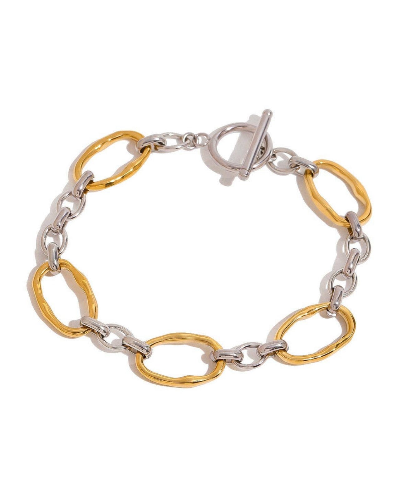 Elevate your elegance with this Mixed Metal Chain Link bracelet, designed to shimmer with timeless sophistication. Crafted for durability and style, its waterproof finish ensures lasting brilliance, making it perfect for any occasion.