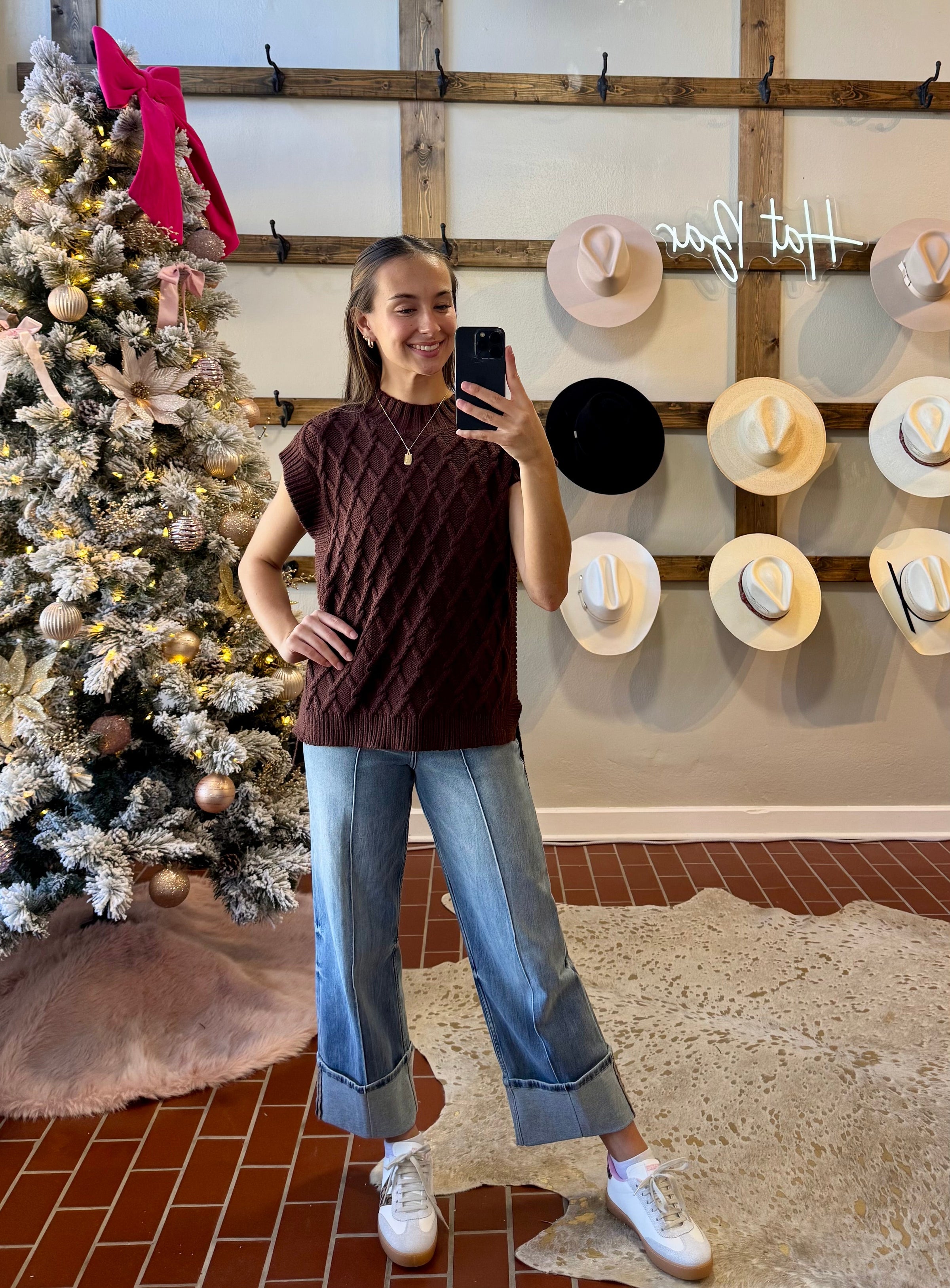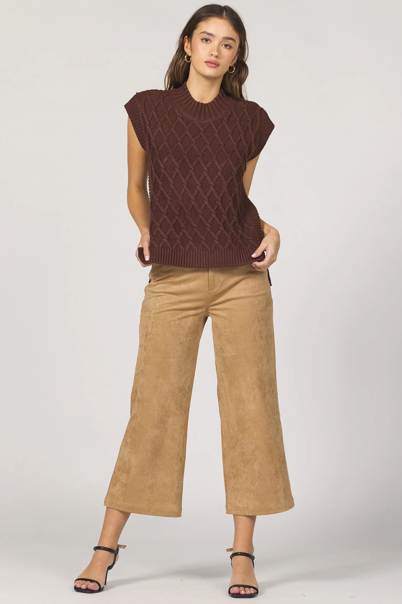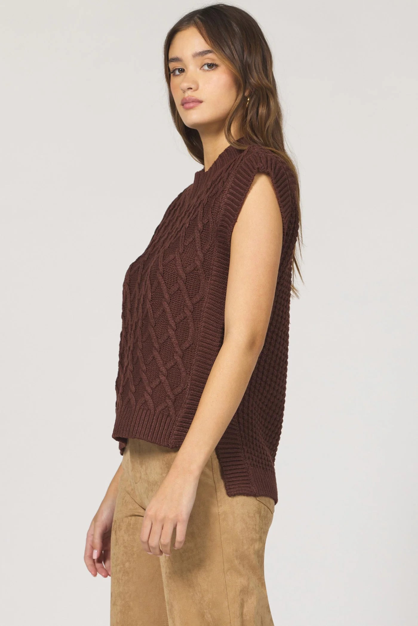 Sleeveless Briana wide neck sweater in seasonal shade.