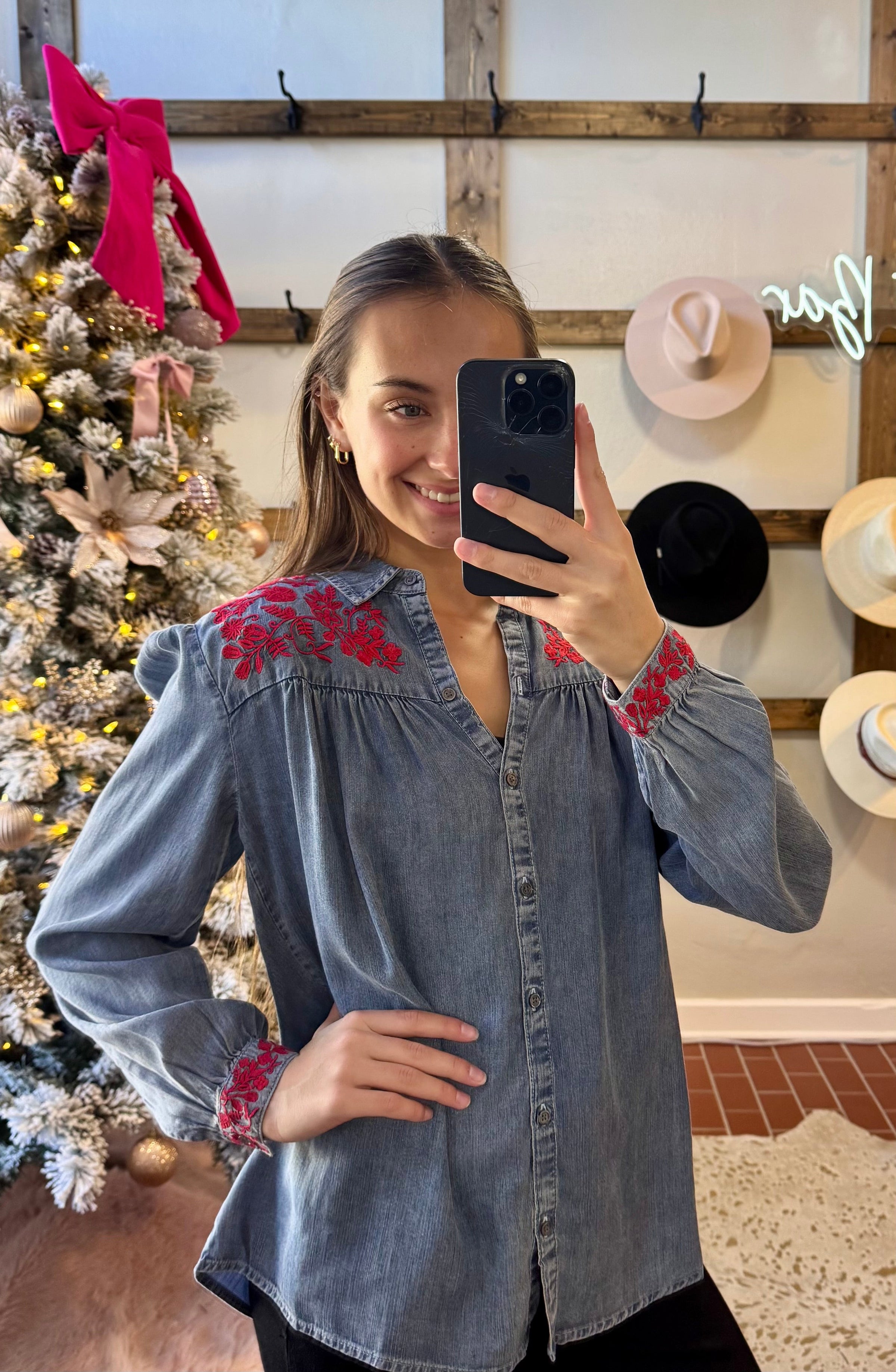 Nasrin long sleeve embroidery top for stylish elegance with natural drape and breathability, perfect for any occasion.