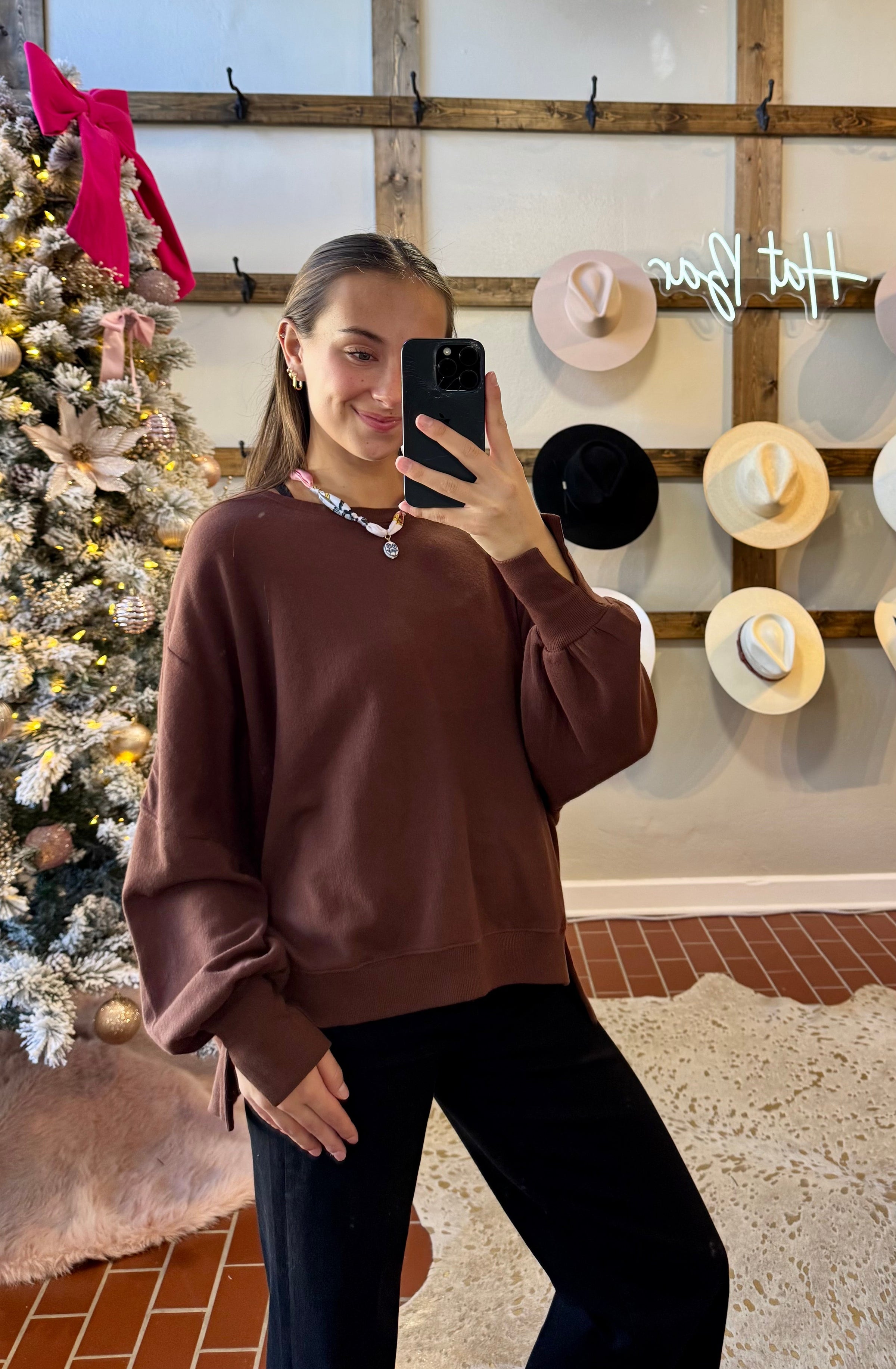 The long sleeves add warmth, making it a versatile piece for layering or wearing on its own.