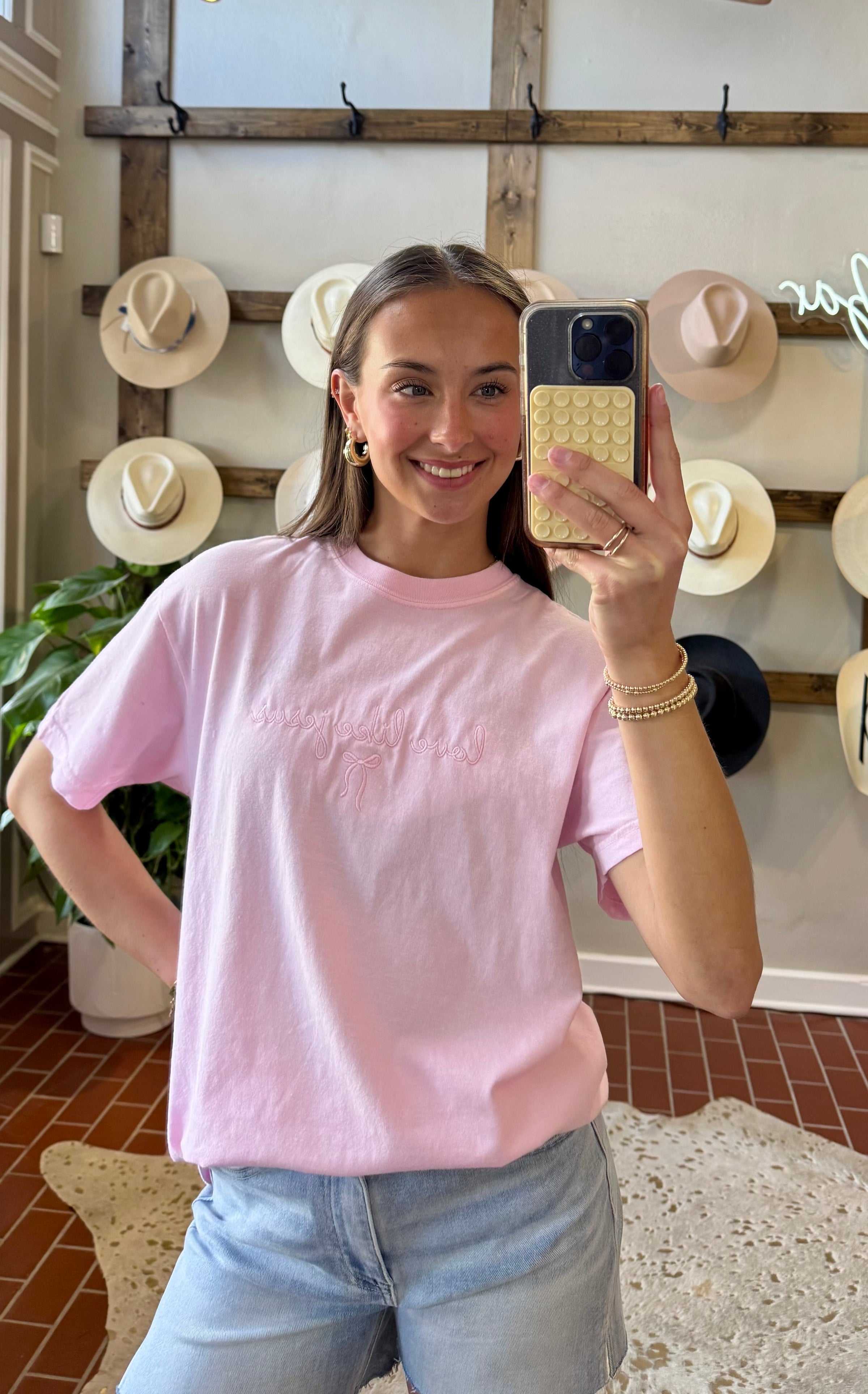 Spread love and inspiration with this precious baby pink tee featuring delicate embroidered wording that reads "Love Like Jesus." Crafted from incredibly soft fabric, this tee combines comfort with meaningful style. Perfect for anyone seeking to express their faith through fashion, it's a versatile piece that works beautifully for casual wear or as a thoughtful gift. The gentle pink hue and intricate embroidery create an understated yet powerful statement that resonates with your values.