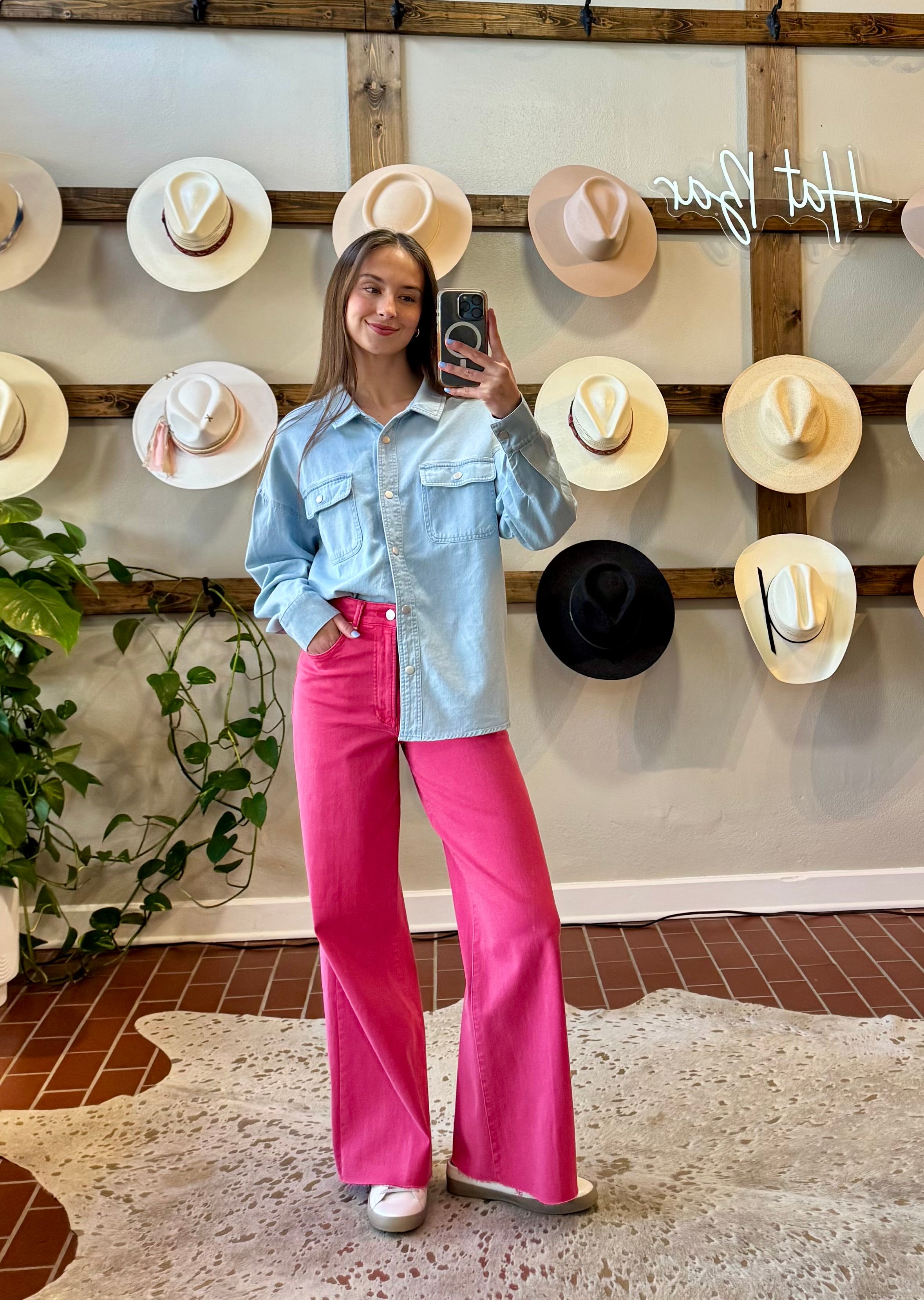 Elevate your style with Dear John Fiona Raspberry Jeans. These timeless wide leg jeans offer a sophisticated silhouette with a high rise and full cut-off hem. Perfect for Spring and Summer, the gorgeous raspberry color adds a pop of color to any outfit. Crafted from a soft blend, these jeans offer exceptional comfort and fit for any occasion