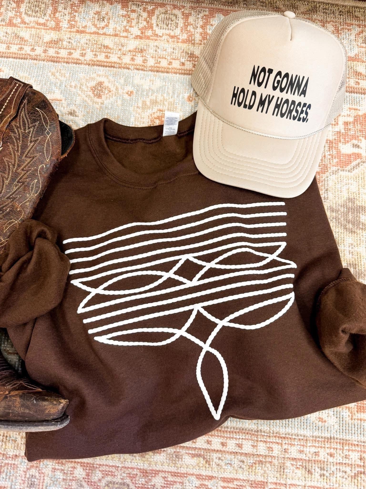 Tan trucker hat with black font