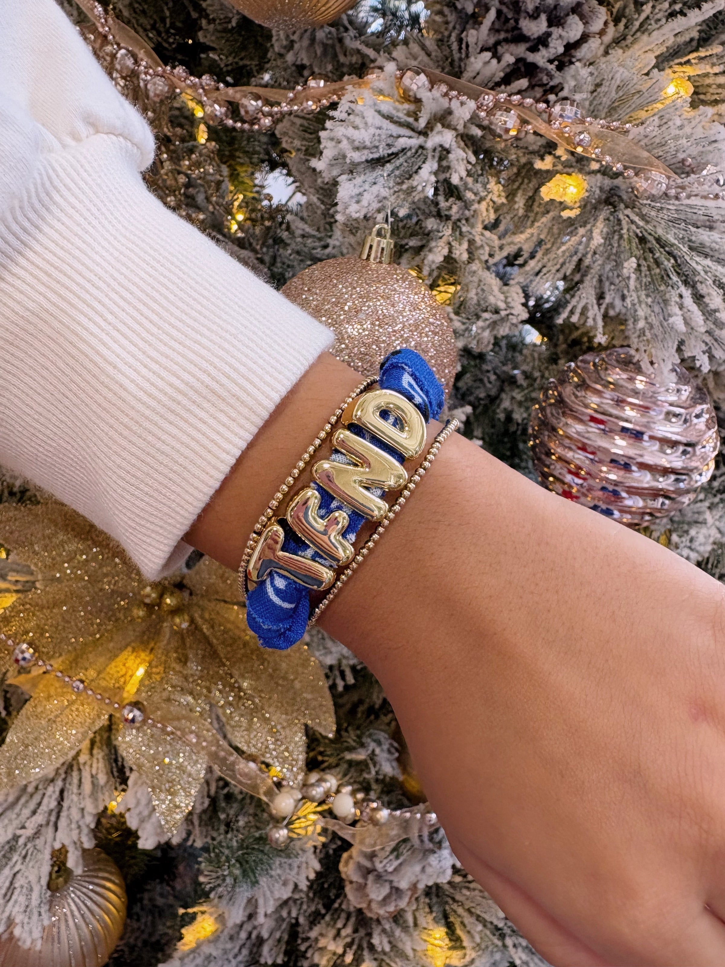 Elevate your game day style with our adjustable bandana gameday bracelets—the perfect accessory to add personality and flair to your outfit. These eye-catching pieces bring that extra spark your look needs, whether you're cheering from the stands or tailgating with friends. Love a custom touch? We offer personalized options to make your bracelet uniquely yours. Show your spirit in style!