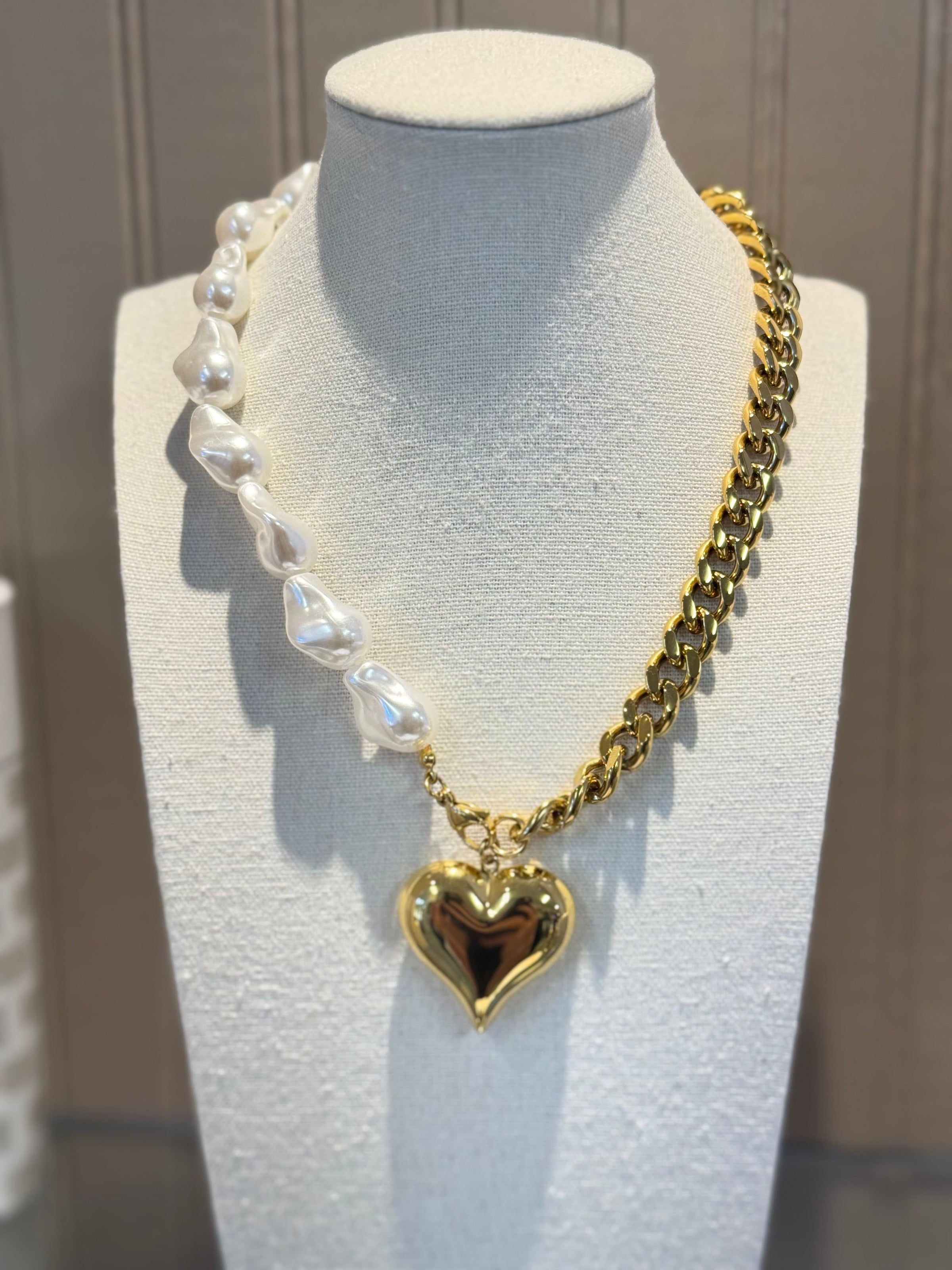This necklace is sure to make a statement . Gorgeous pearl and gold necklace with a gold bubble charm . Lobster clasp closure