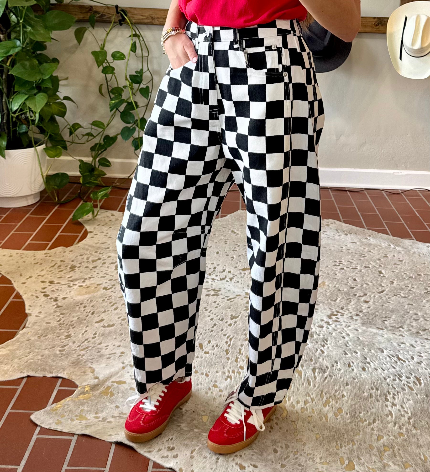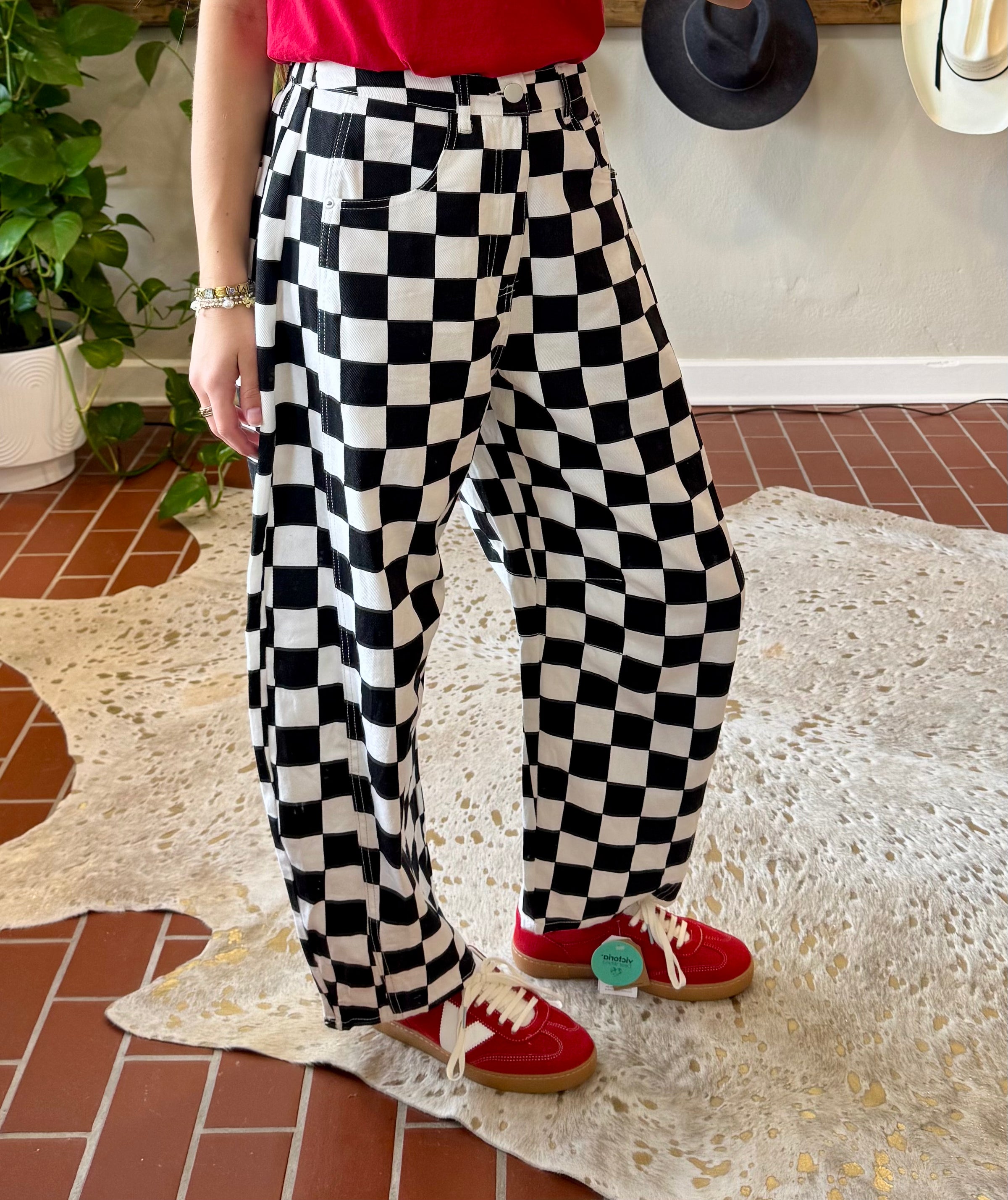 Checkered Barrel Jeans