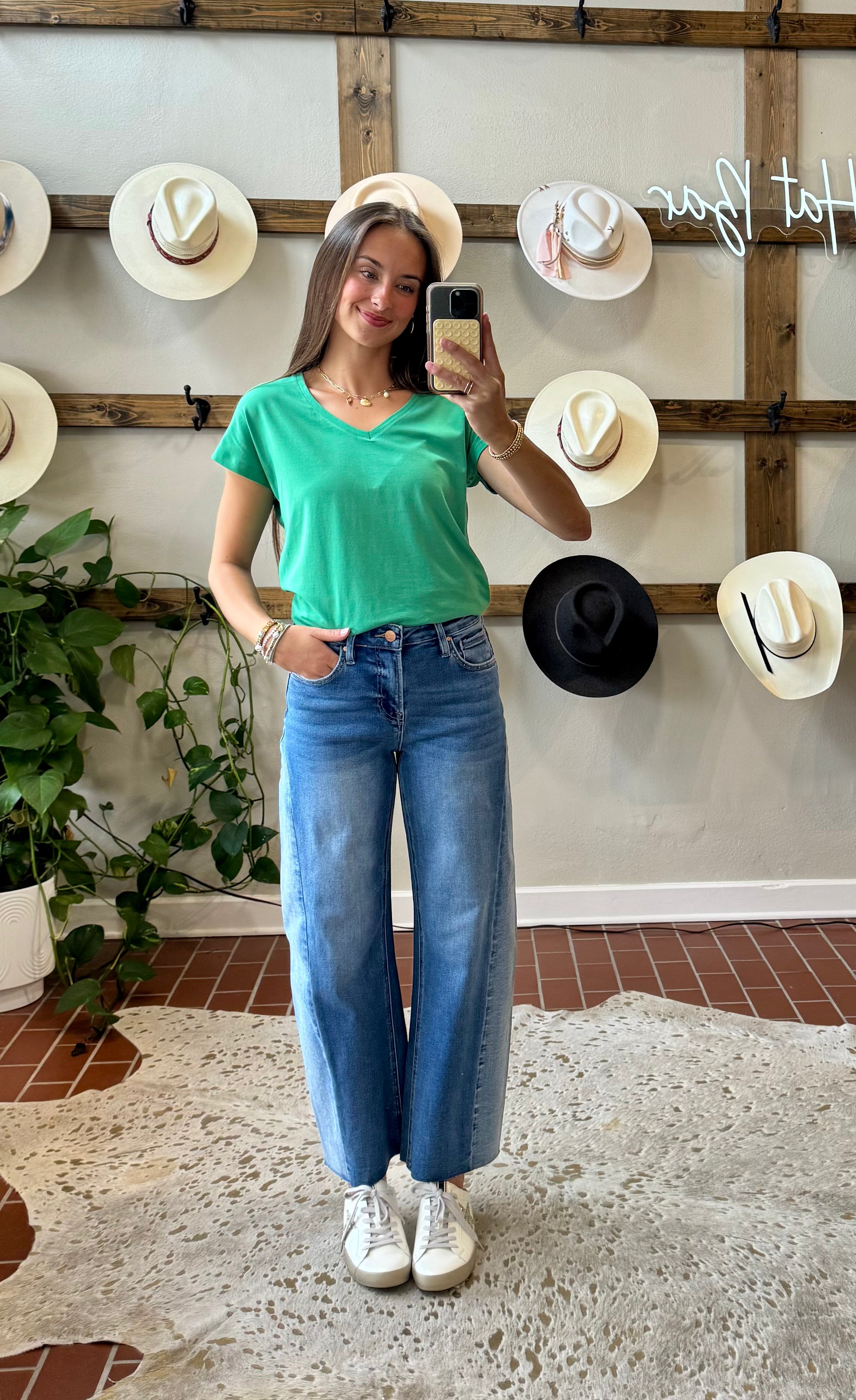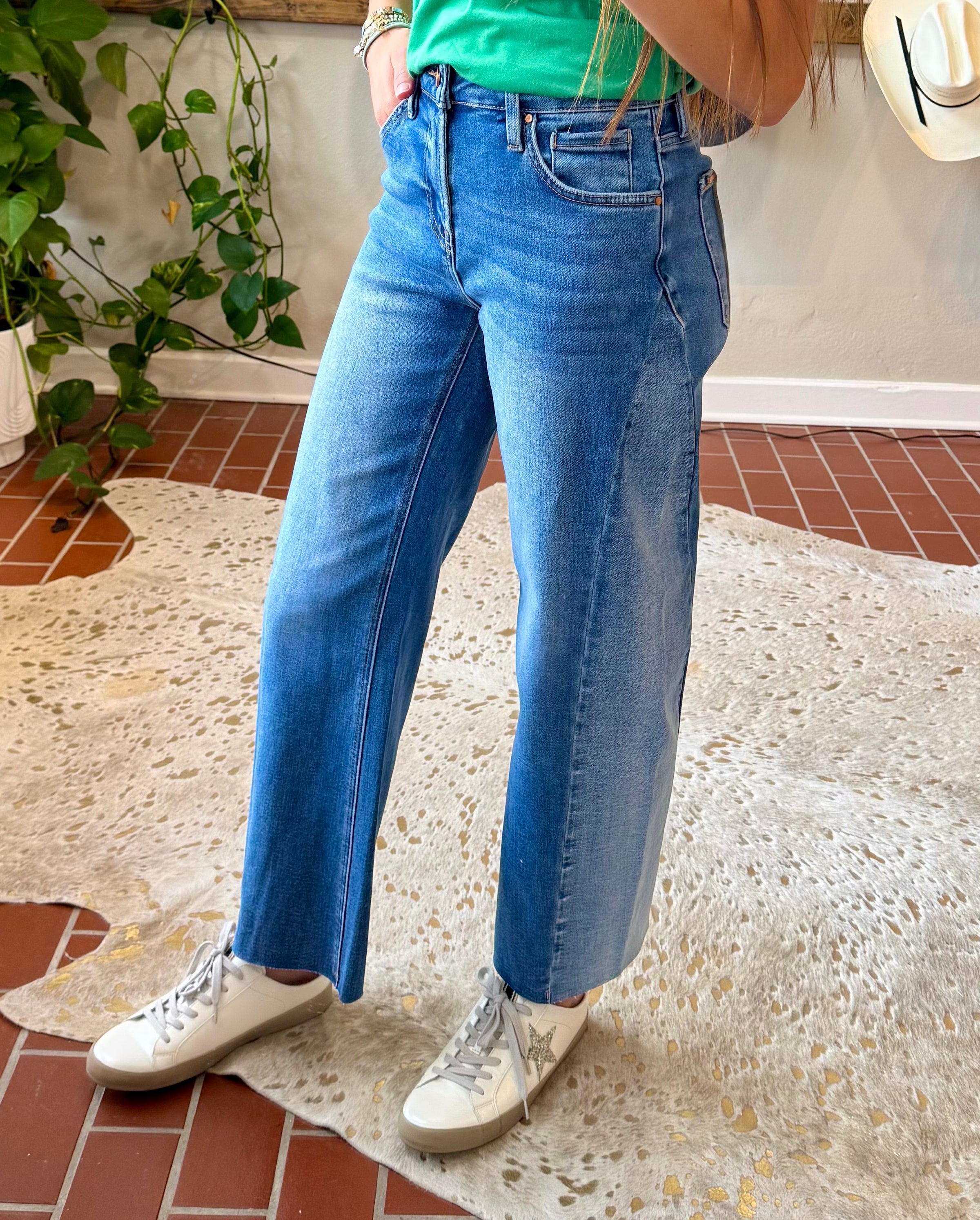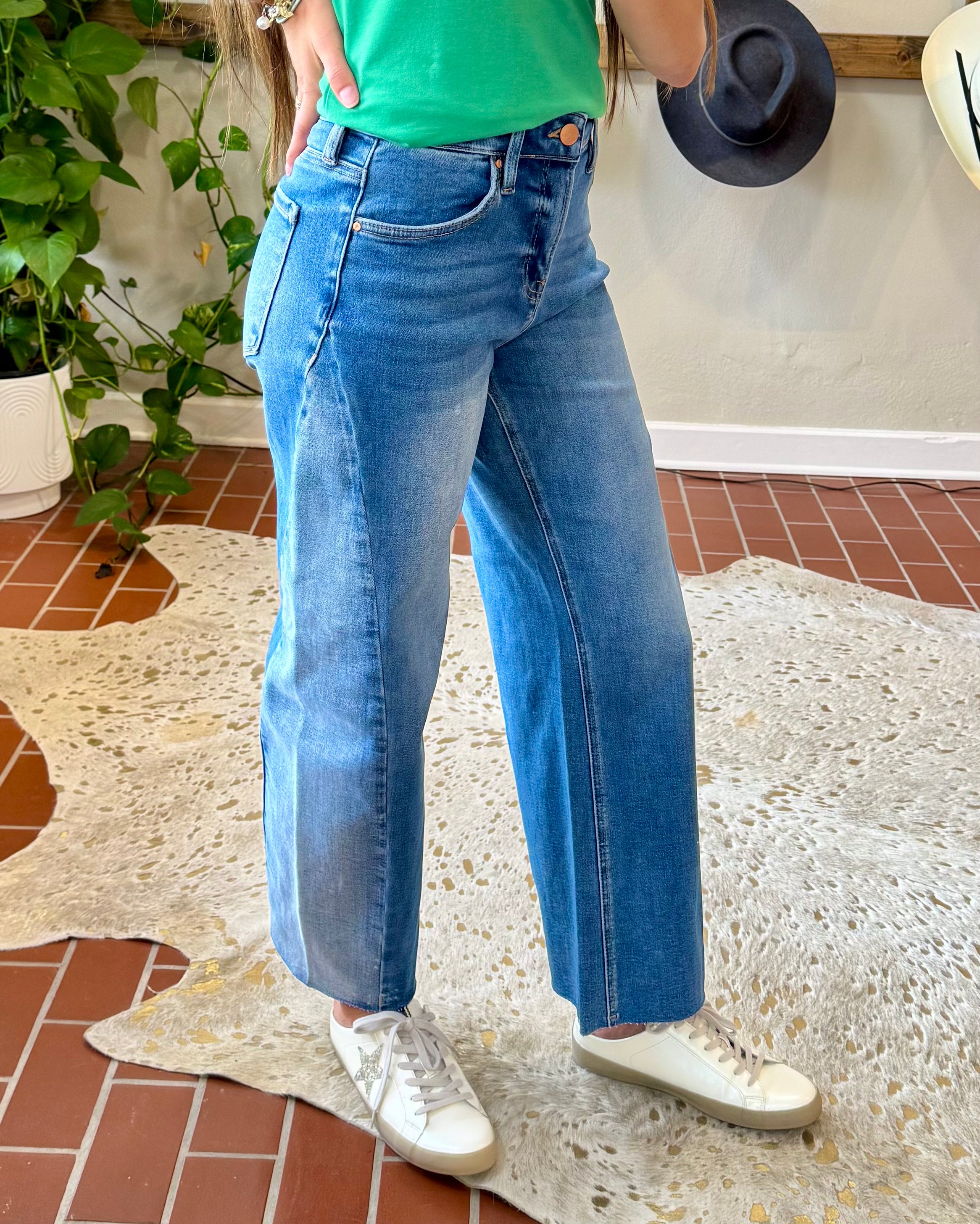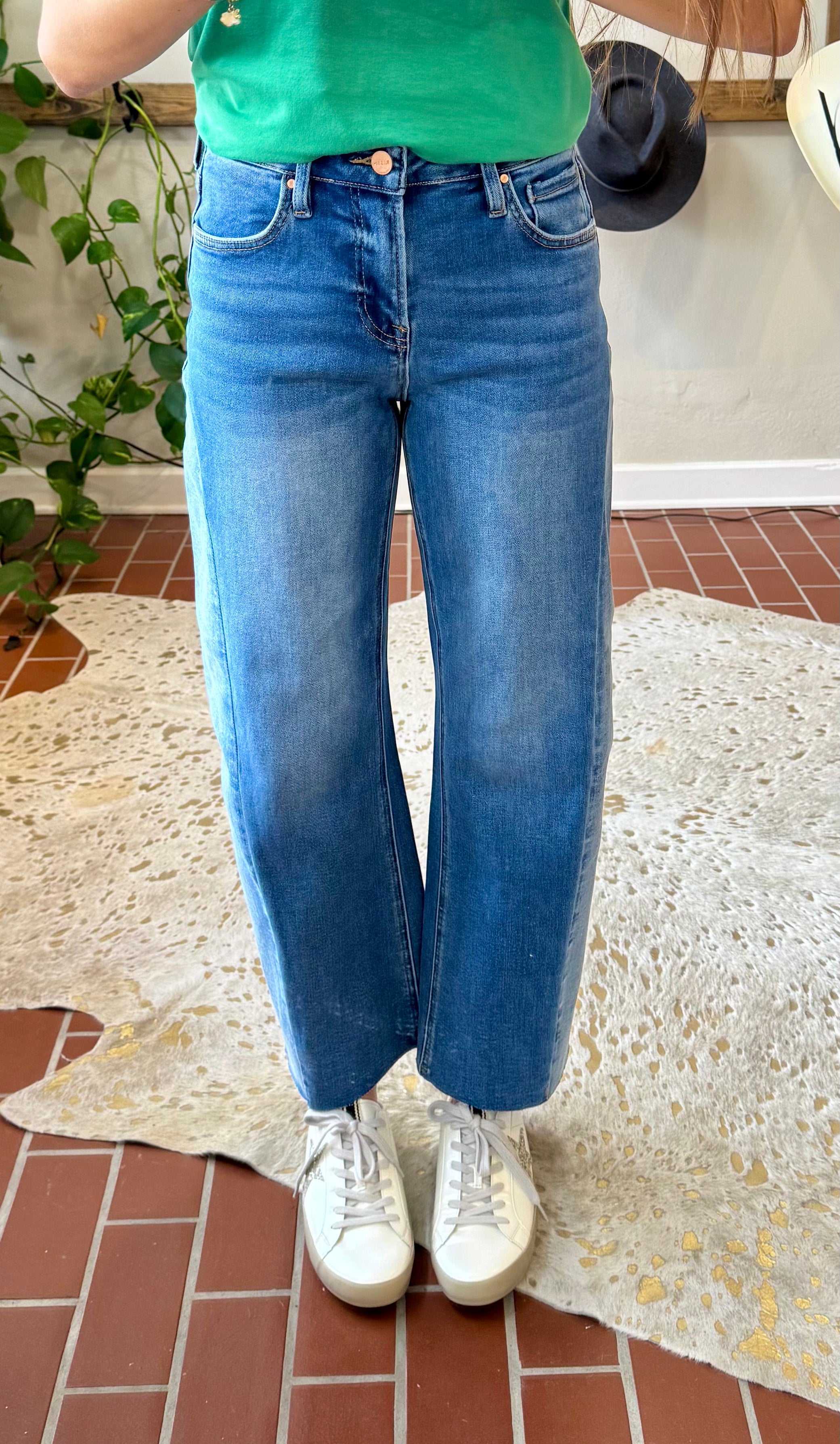 The Risen Jessie Barrel Jeans were a standout hit at the Dallas Market for good reason. These jeans feature a relaxed, slouchy silhouette that's effortlessly cool while remaining incredibly flattering on every figure. The cropped unfinished hem with contrast wash detailing adds an on-trend edge that works with everything from sneakers to heels. Crafted with plenty of stretch, these jeans move with you all day without sacrificing shape or support. The barrel leg cut hits that perfect sweet spot between comfort and style—roomy through the hip and thigh with a tapered finish at the ankle. Whether you're dressing them up or keeping it casual, the Jessie delivers that coveted relaxed-yet-put-together vibe.