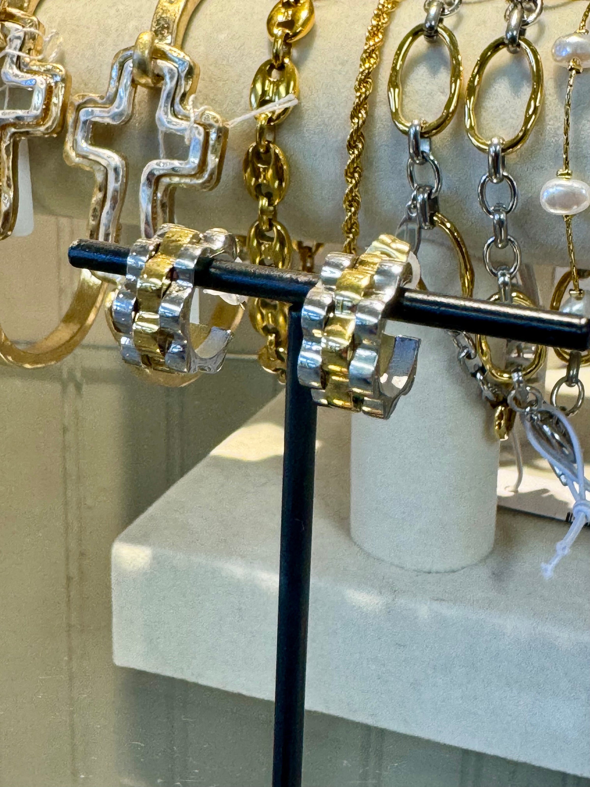 Small two toned silver and gold watch band earrings . Pair with our matching bracelet. . Simple and perfect to pair with your basic outfits