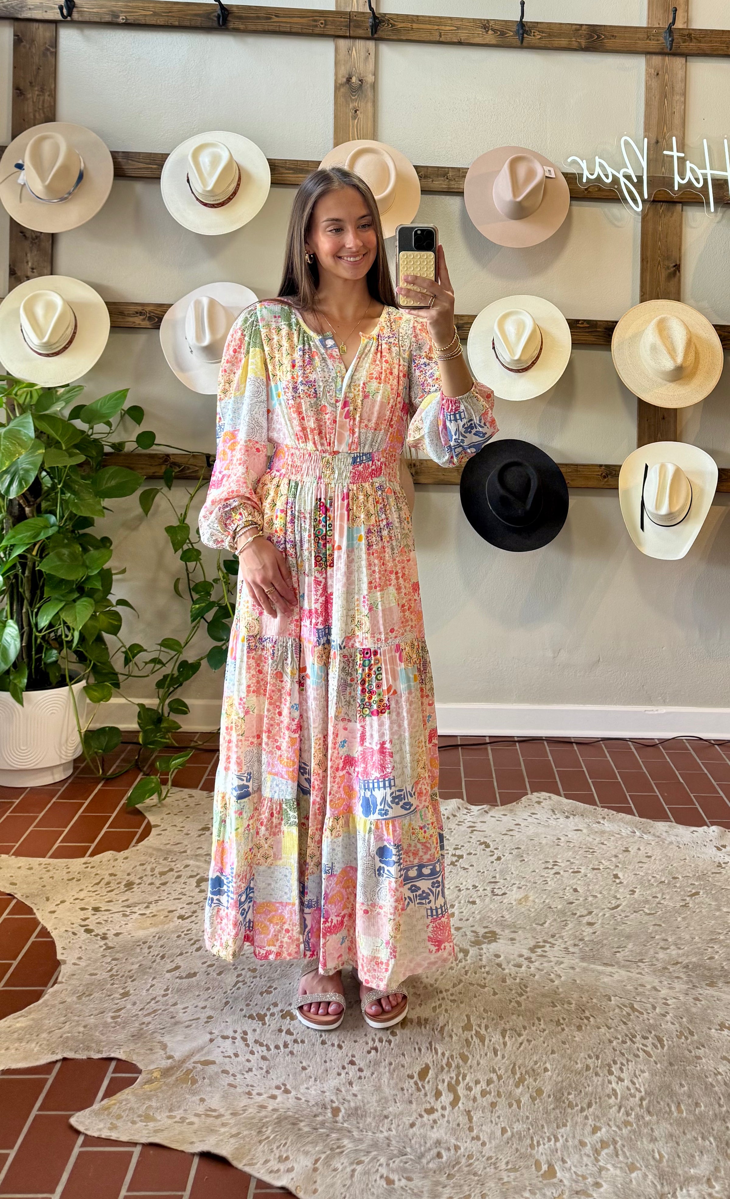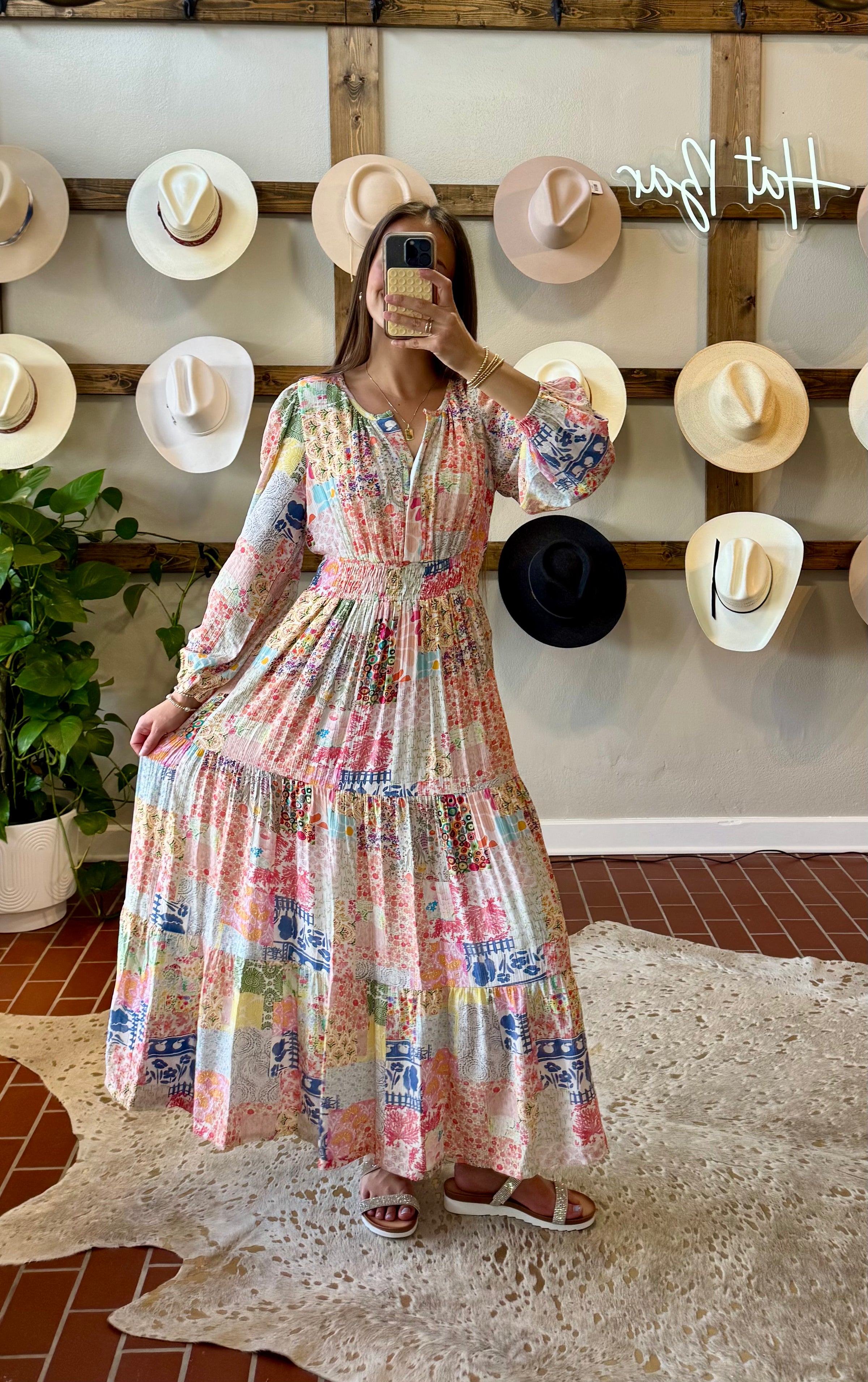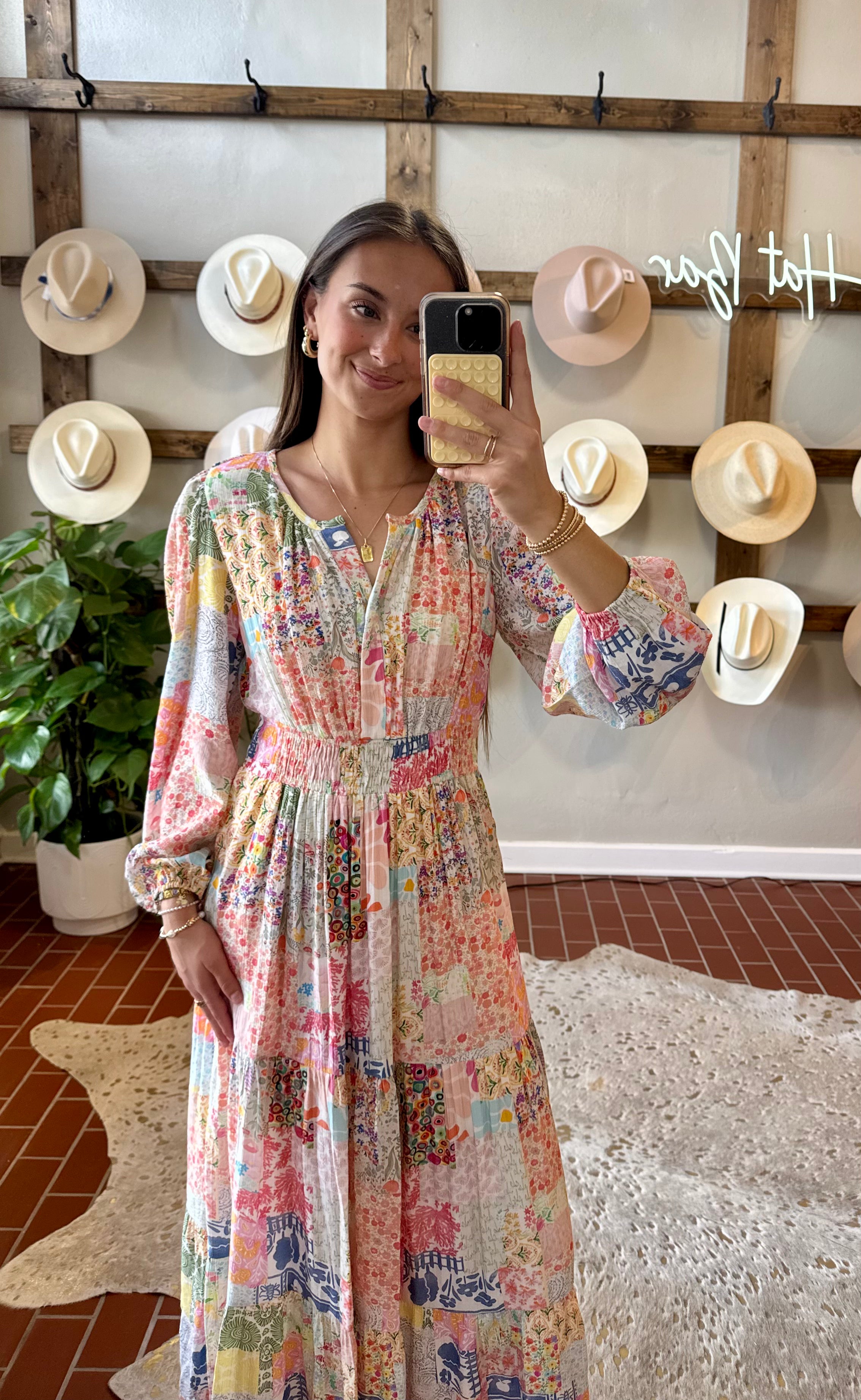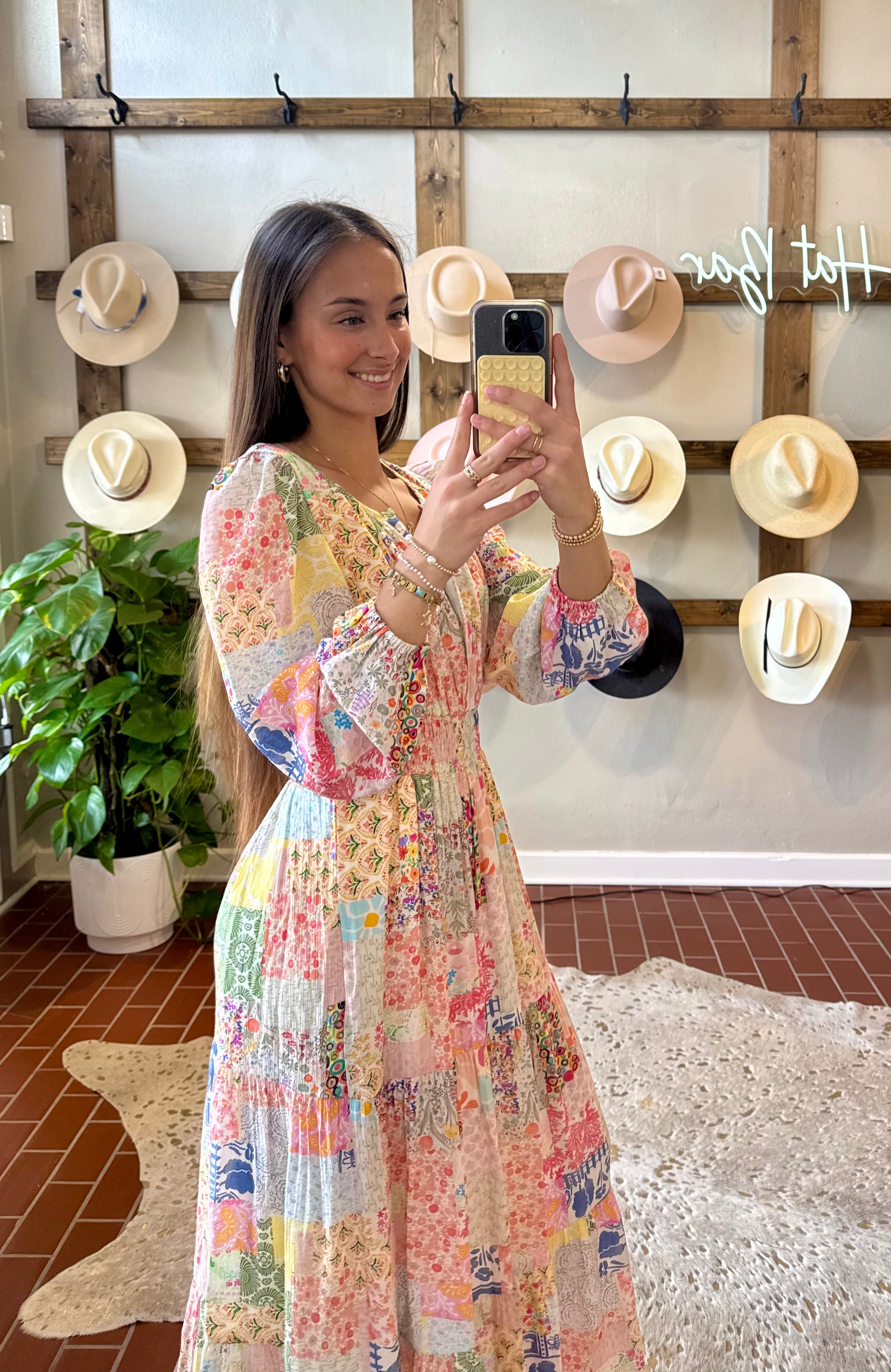 Capture timeless moments in this stunning Spring Patchwork Dress, designed to elevate your family photos. The vibrant multi-print fabric brings personality and charm to every frame, blending colorful patterns that complement any skin tone and style. Perfect for creating memories that last, this dress combines eye-catching visual appeal with comfortable wear. Whether you're gathering for portraits or special occasions, this patchwork beauty ensures you'll look radiant and feel confident throughout the day. Features elastic waistband . V neckline with a closure front hook.