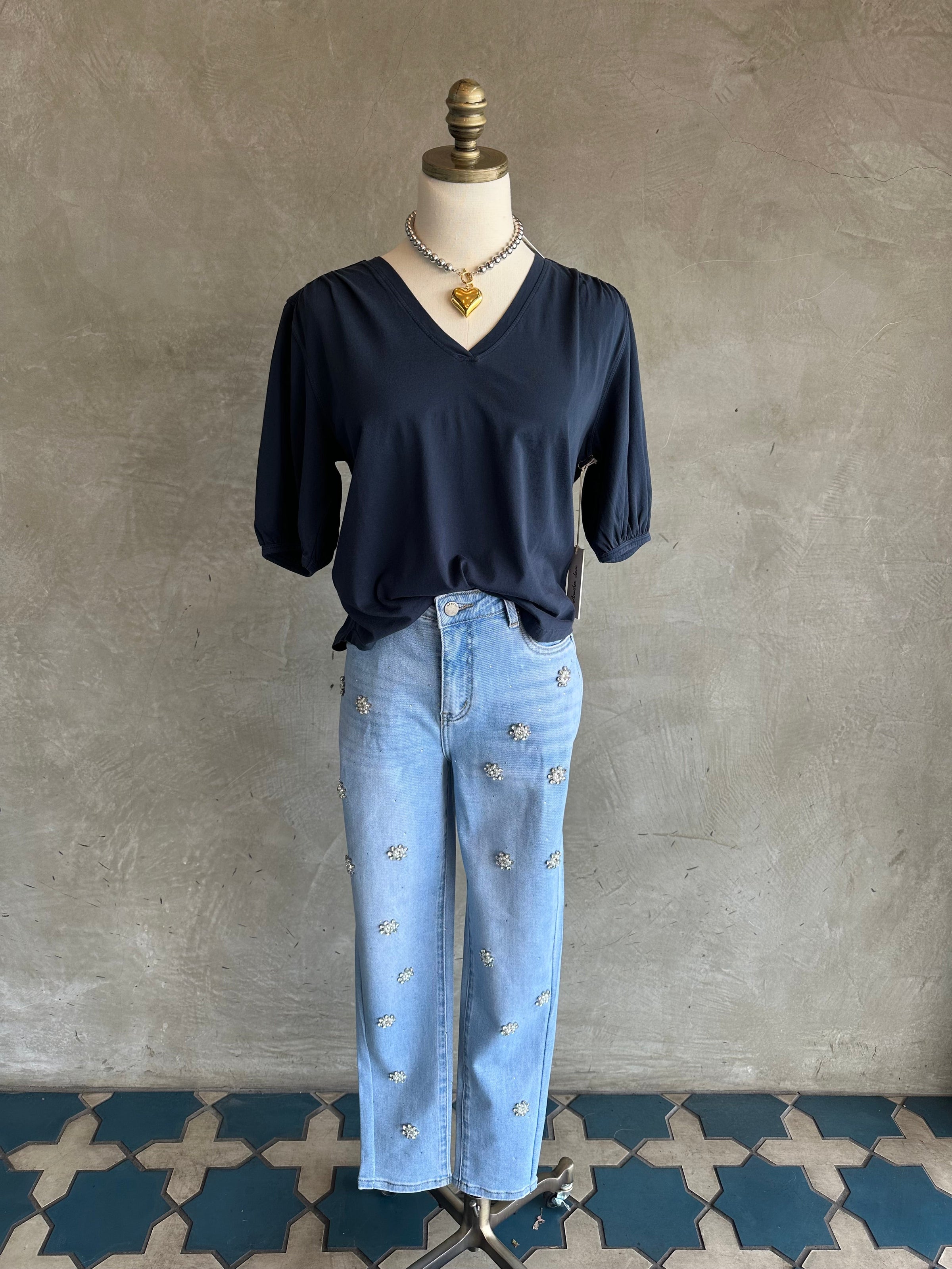 Phoebe 3/4 sleeve v-neck top crafted from 100% cotton, offering a perfect blend of comfort and style. This classic fitting piece is ideal for layering or wearing on its own. Its breathable fabric ensures all-day comfort while adding a touch of elegance to any outfit.