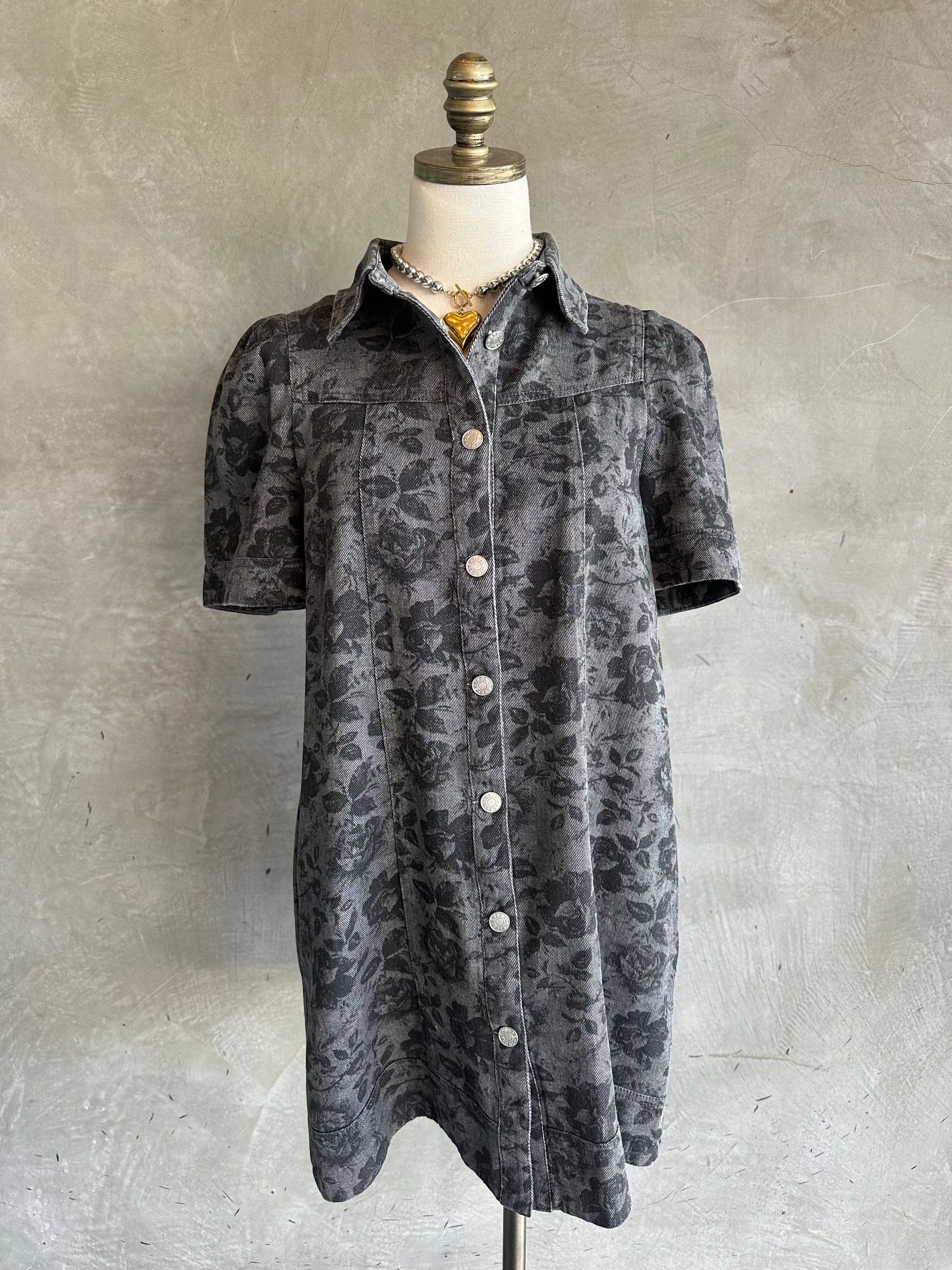 Discover the perfect denim dress with a refined floral pattern that elevates your everyday look. It offers softness and breathability. Silver buttons down the front, adding a subtle touch of elegance. This dress combines casual denim durability with feminine details, making it a versatile choice for any occasion. Upgrade your wardrobe with this stylish and comfortable piece. Dress also has pockets which we all love !!