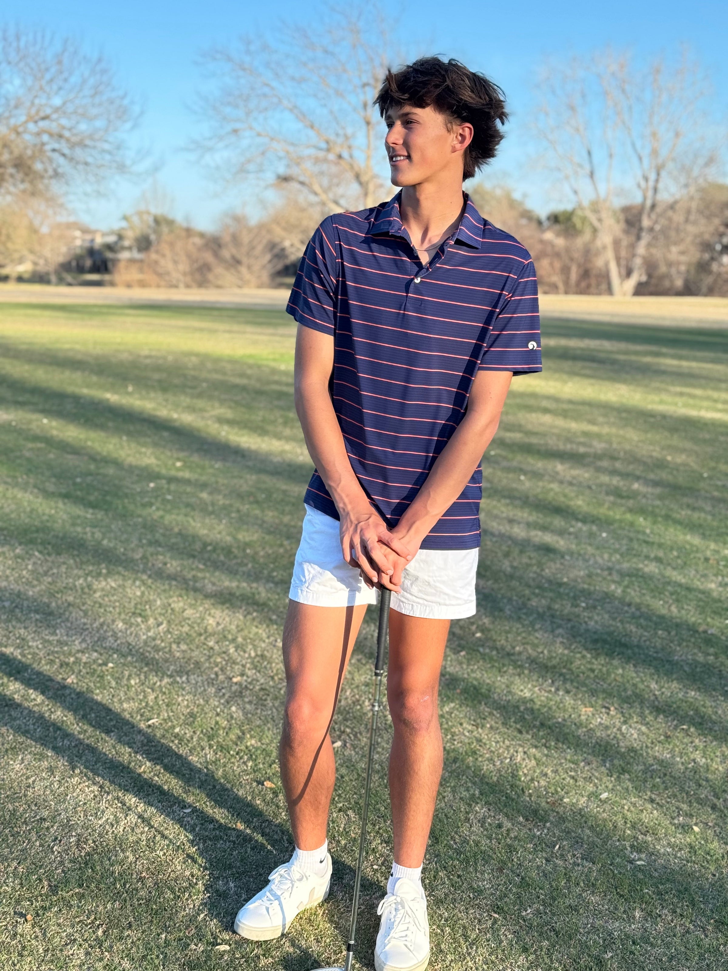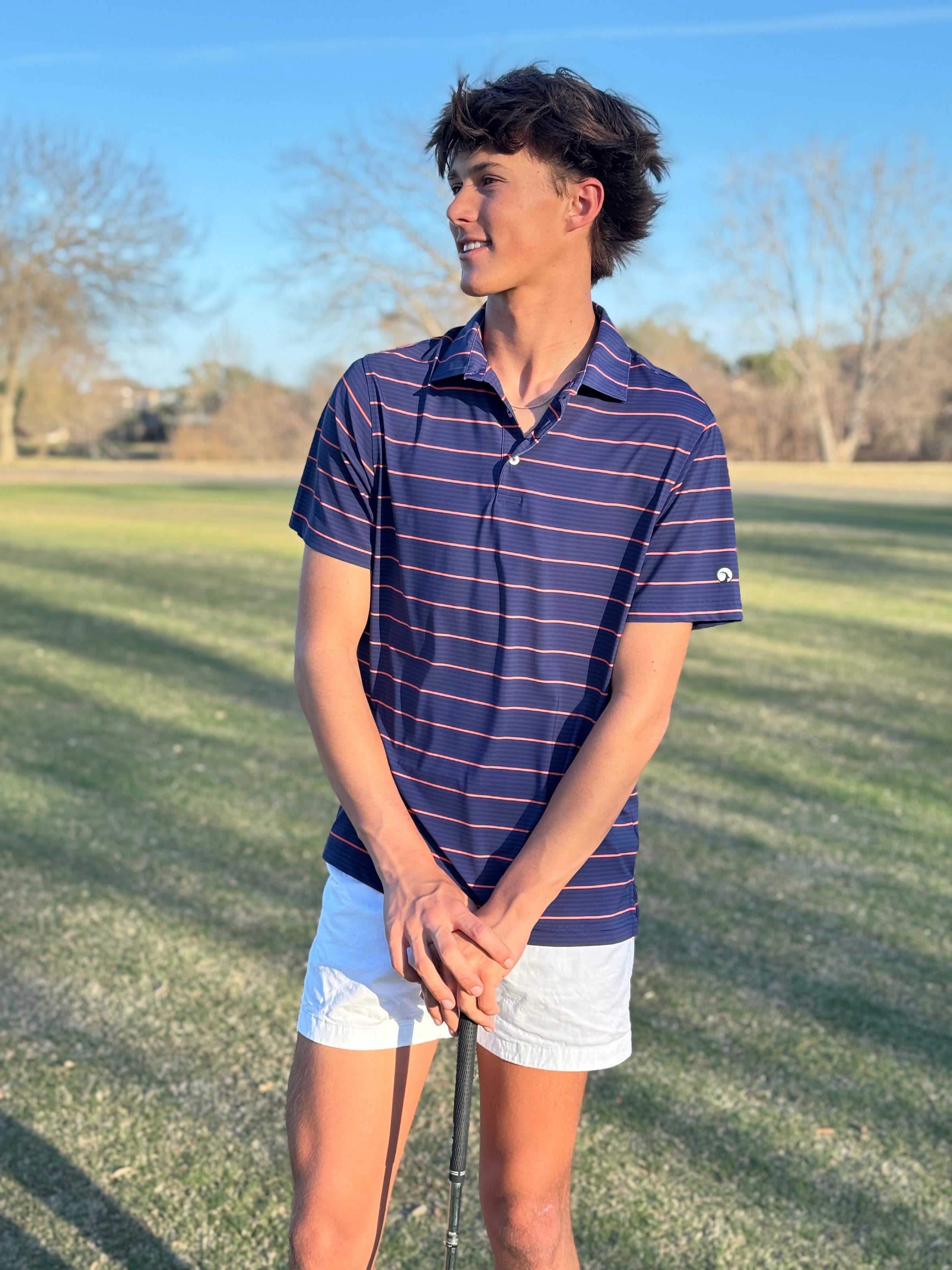 From sun-scorched fairways to family cookouts at the ranch, The Apex Stripe Polo delivers laid-back style with performance in its DNA. Designed by College & Harbin for guys who live for early tee times and late campfire nights, this polo pairs classic stripes with a rugged navy palette that nods to the dirt roads of Texas and the canyon rock of Cripple Creek.