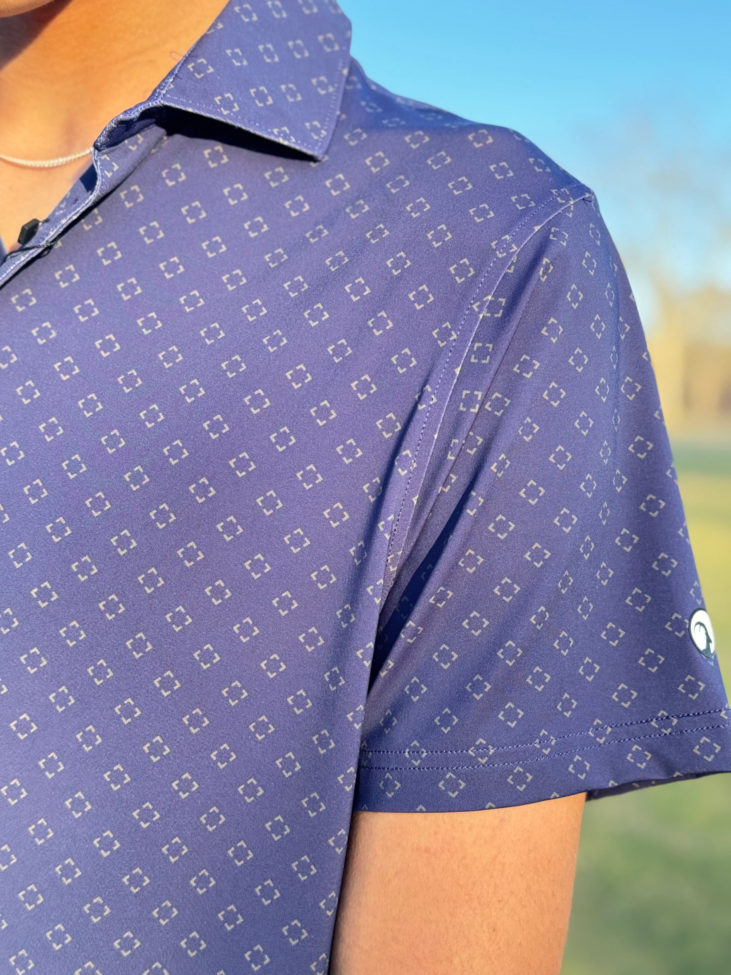 Clean, sharp, and built for movement, The Quad Polo in Navy Microprint is your all-day, go-anywhere shirt. Designed with a subtle geometric print on a deep navy base, this polo brings a touch of polish without ever trying too hard—ideal for post-hunt dinners, early meetings, or casual Saturdays in town.