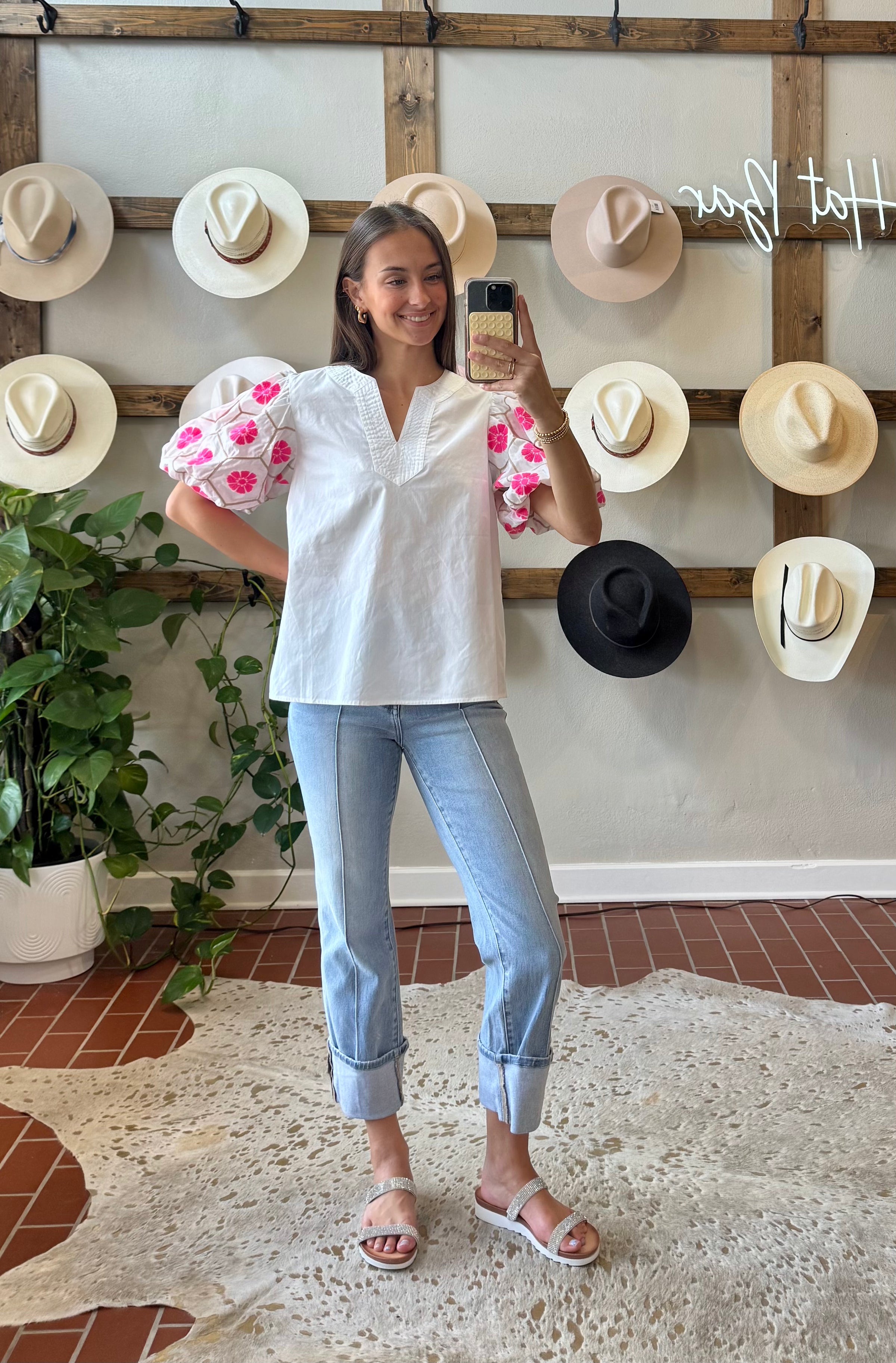 Elevate your denim collection with these Risen Kelsey Pin Tuck Jeans, a customer favorite at Gypsy Pearl. The light wash creates an effortless, versatile look perfect for spring and summer styling. Designed with a flattering high-rise waist and finished with charming cuffed bottom details, these jeans combine comfort with on-trend pin tuck detailing that adds dimension and visual interest to your everyday wardrobe.