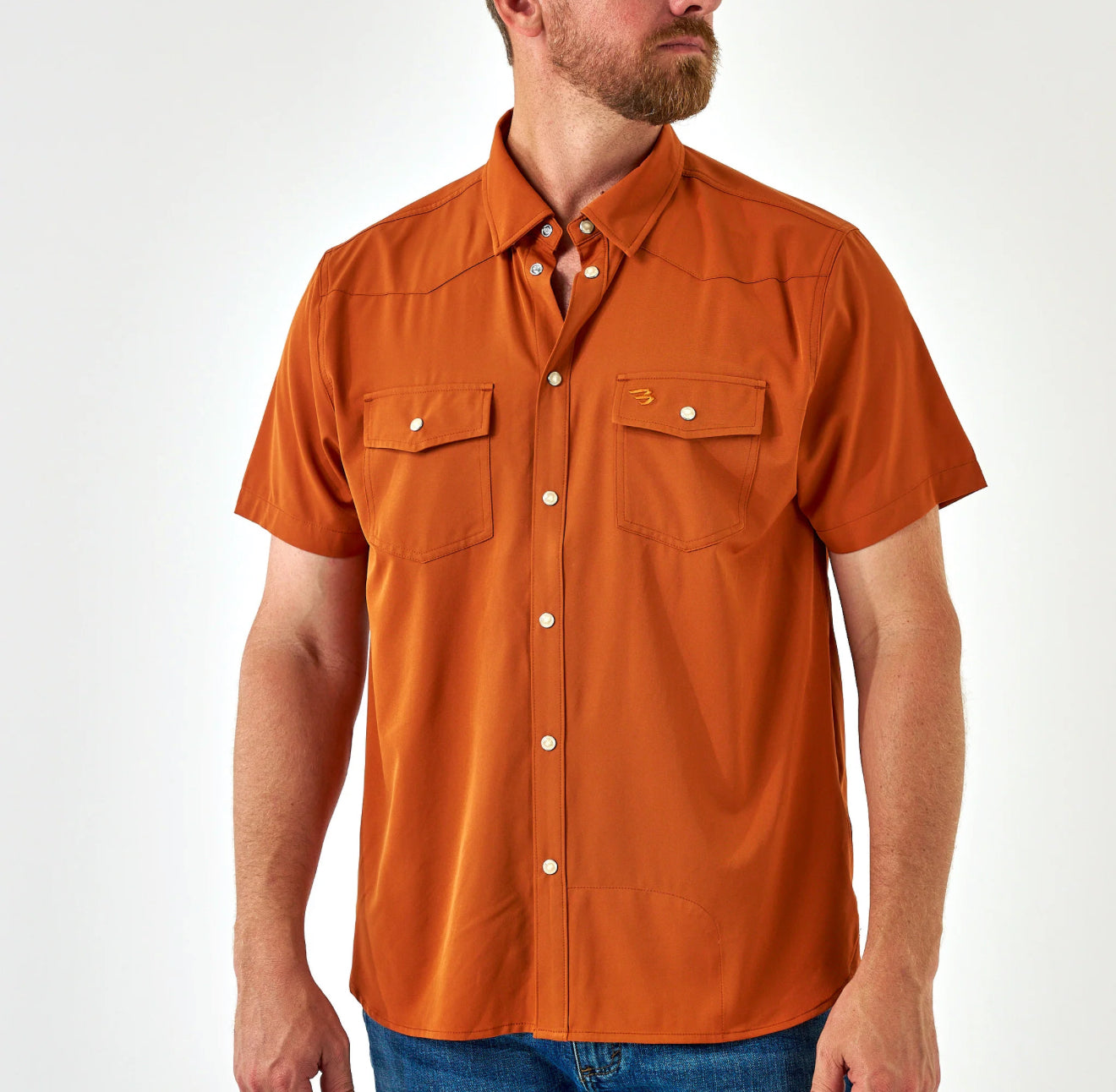 The Performance Western Shirt, crafted for the modern individual who values both style and functionality. Made from a premium blend of 90% Polyester and 10% Spandex, this button-up offers lightweight performance and superior comfort. Constructed from a lightweight performance fabric, designed to keep you cool and comfortable all day long. The breathable, quick-dry, and moisture-wicking properties ensure you stay dry and fresh, while the four-way stretch fabric provides maximum flexibility and mobility.