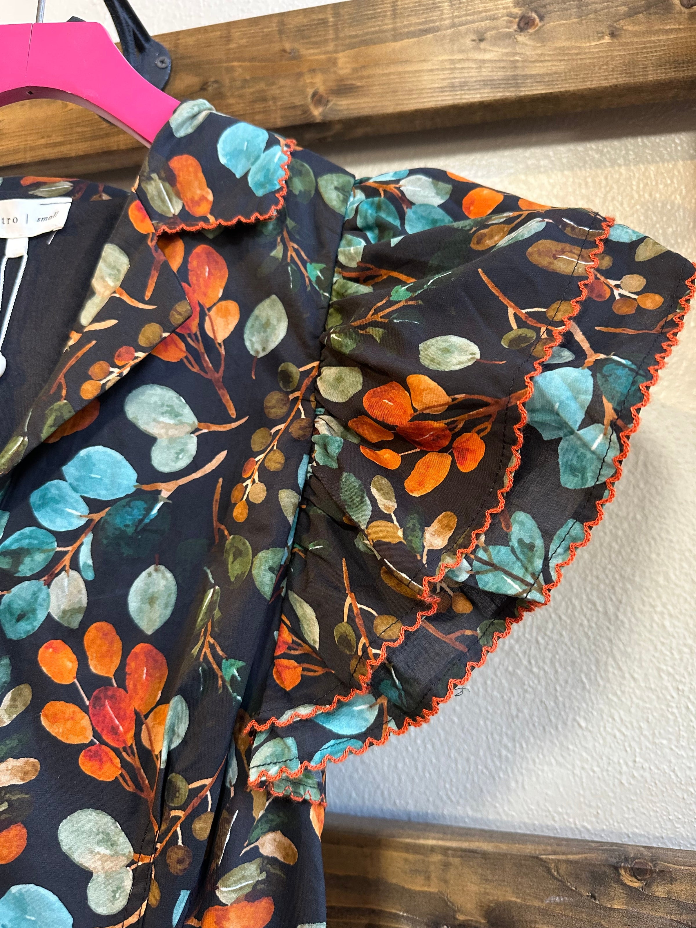 This charming fall dress is ideal for family photos or simply enjoying a stylish day out. Featuring delicate ruffle sleeves and elegant gold button accents, Practical pockets add convenience while its still stylish Made with a comfortable 100% cotton lining and durable 100% polyester exterior, this dress ensures both comfort and lasting wear throughout the season.
