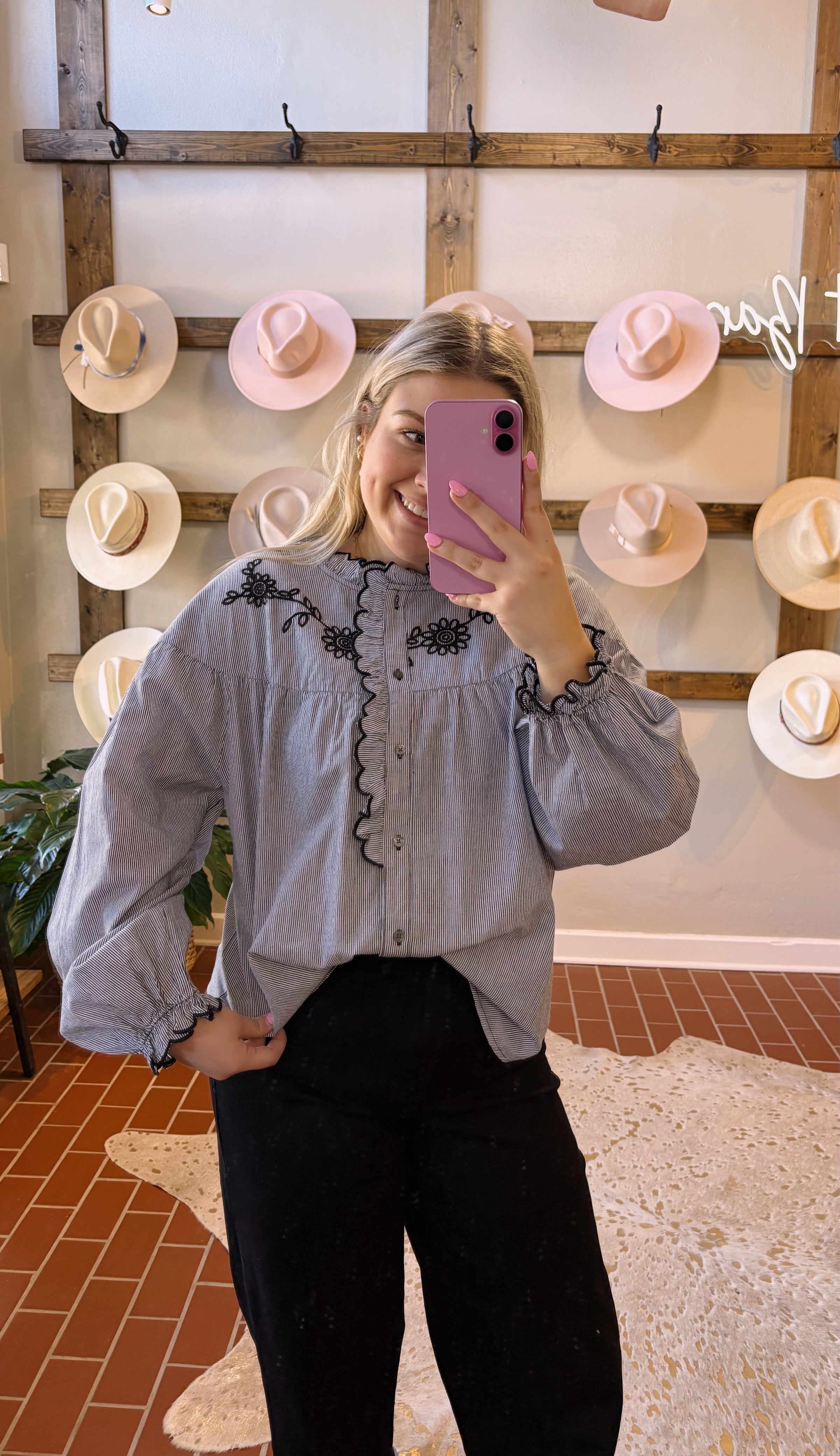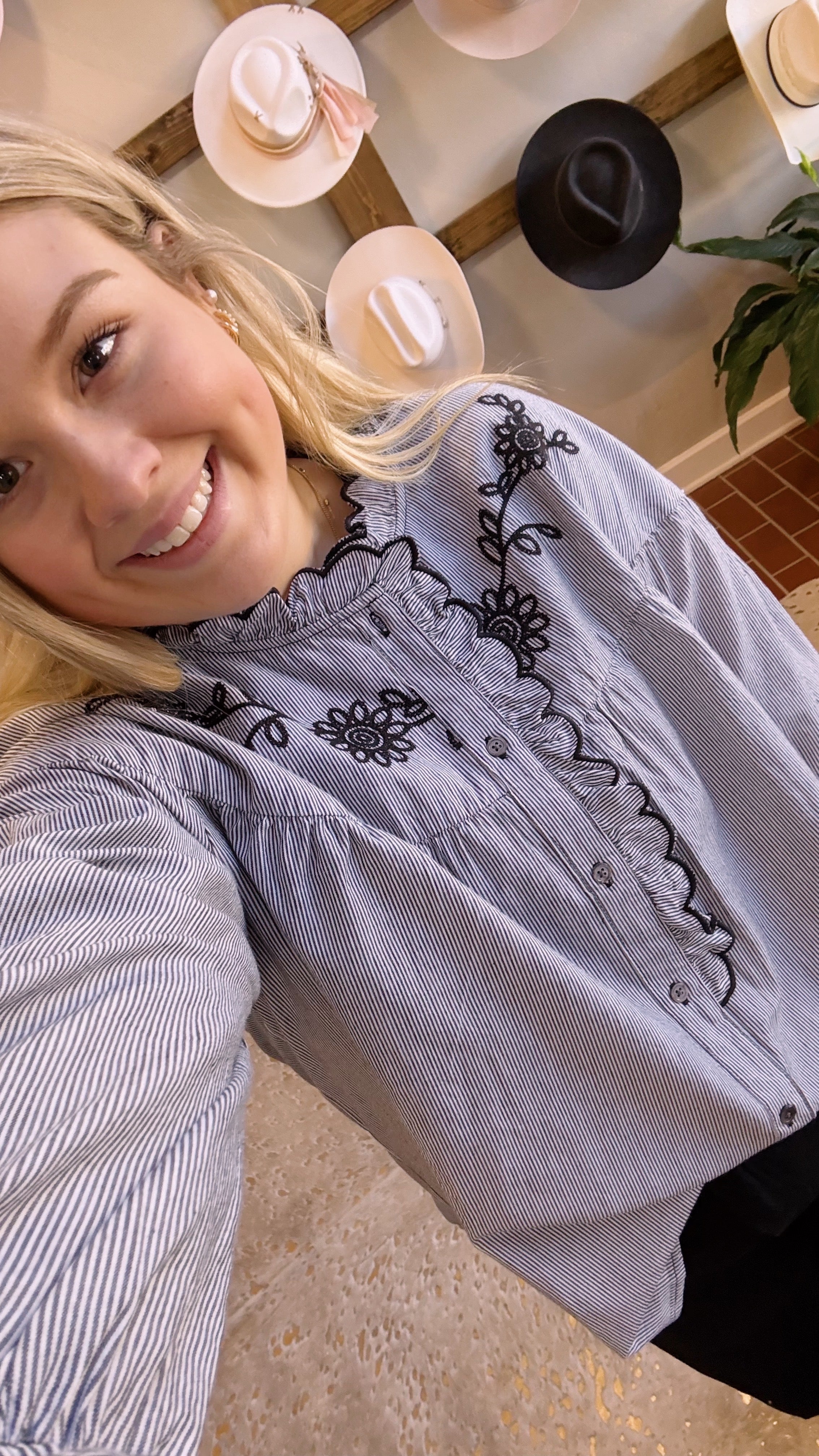 Embrace timeless elegance with the long-sleeve Hilary shirt, featuring intricate embroidery with a touch of sophistication.