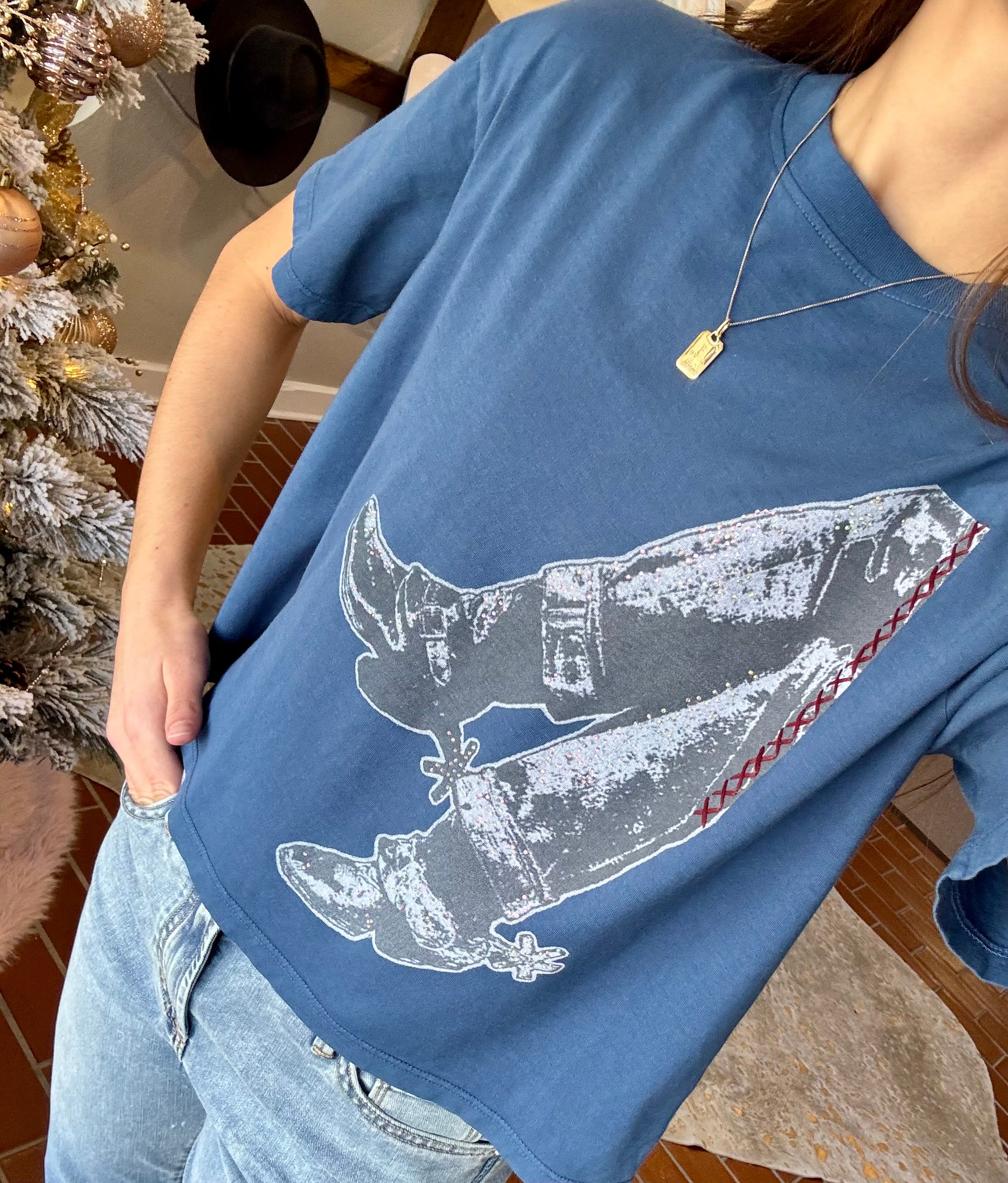 The Spur Wide Boy Tee is a must-have for your concert-ready wardrobe. Featuring delicate embroidered details and sparkling rhinestone embellishments, this vintage crop tee adds a touch of glam to your casual style. Pair it effortlessly with a denim skirt and boots for an unforgettable look. True to size for a comfortable fit that looks as great as it feels.
