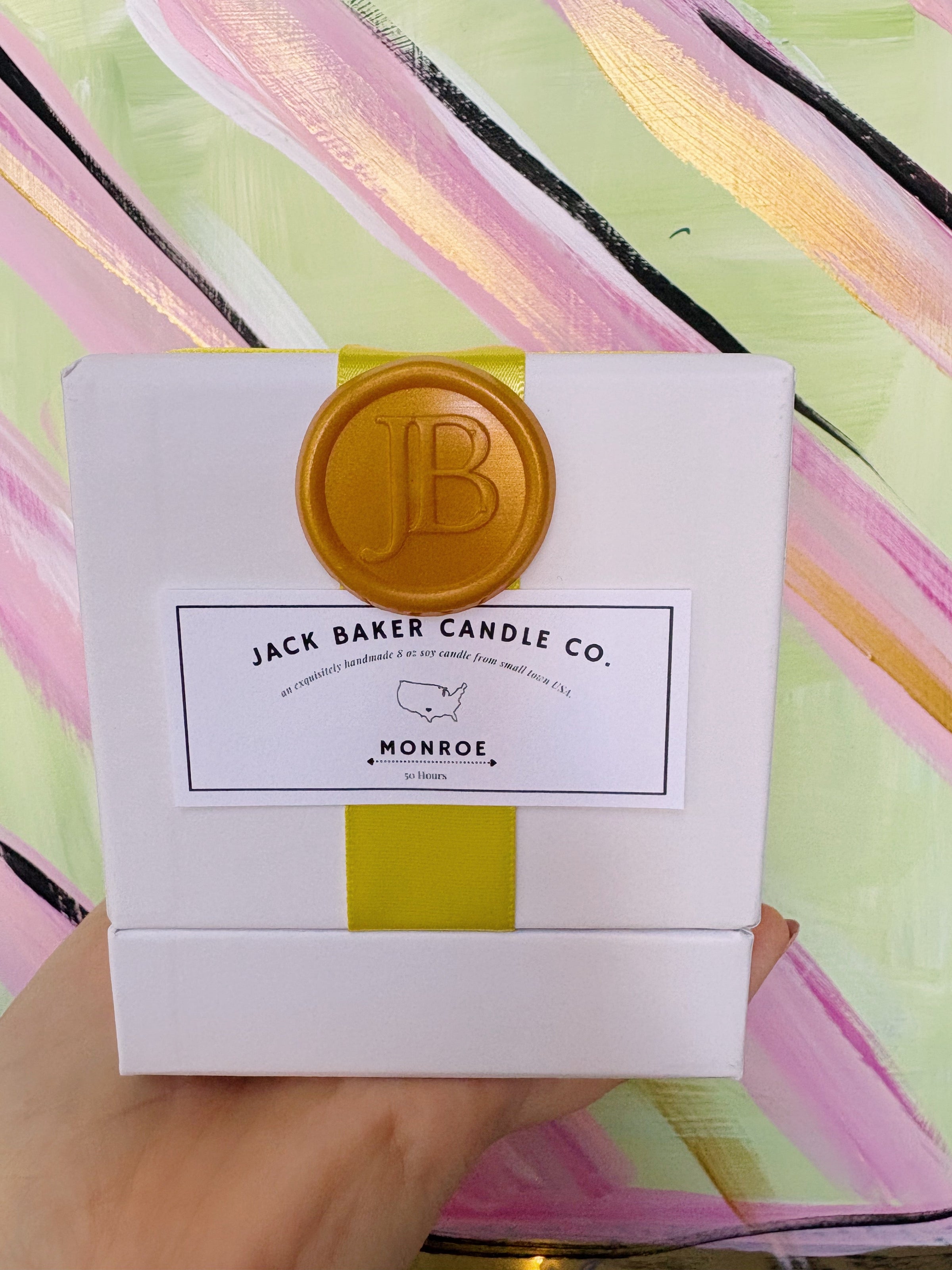 Experience the soothing ambiance of our Jack Baker Gift Box Candle. Delightfully scented, this store favorite makes the perfect gift for any occasion. Come indulge in the luxury of our artisanal candles and treat yourself or your loved ones to a truly indulgent experience!