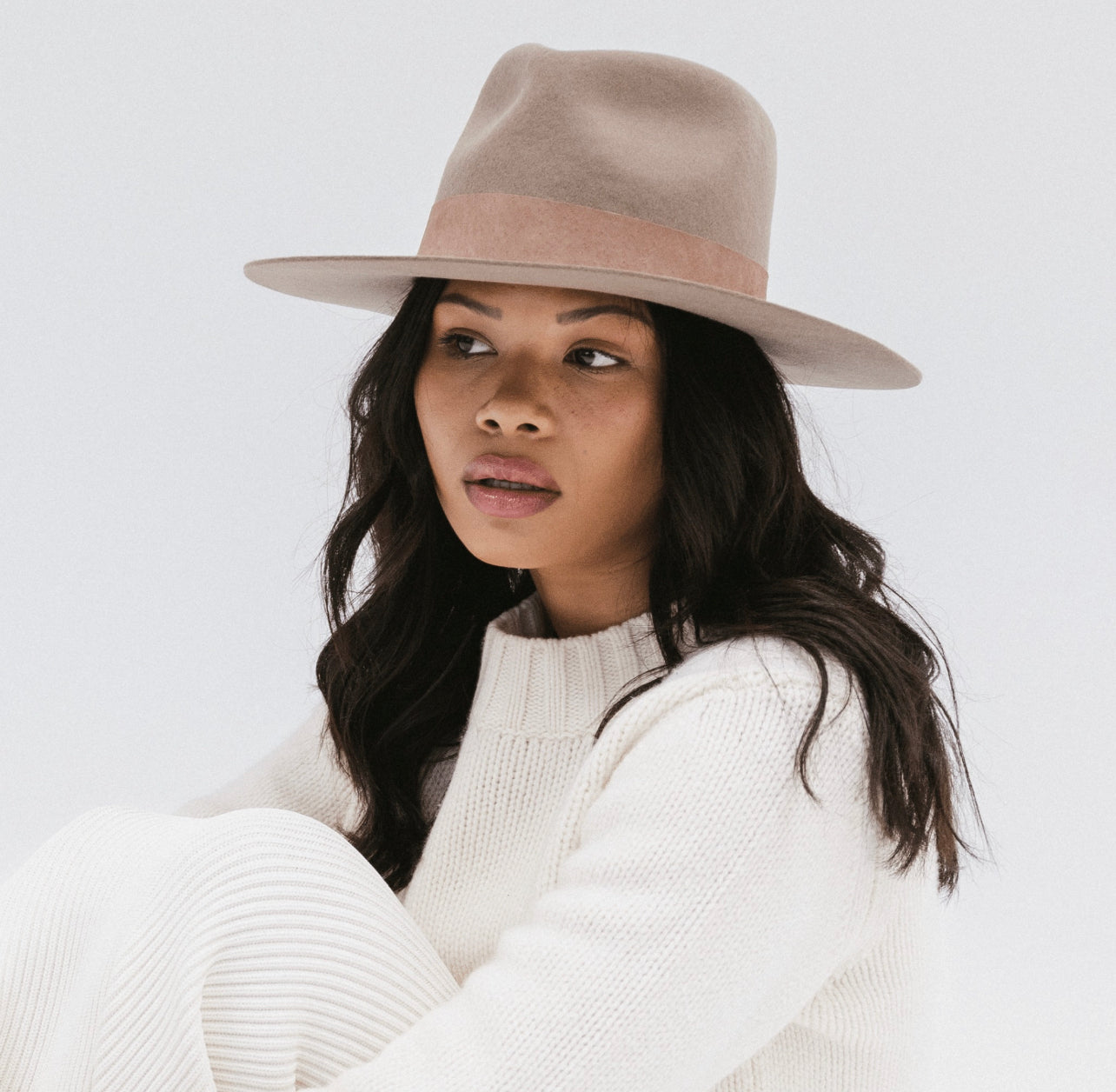 Better than your grandfather's fedora. Modern + sharp, Miller is a classic staple with a modern feel. We consider this style to have a tall, defined pinched fedora crown + a structured wide flat brim. Miller features a hand-sewn suede band that layers seamlessly with additional hat accessories.