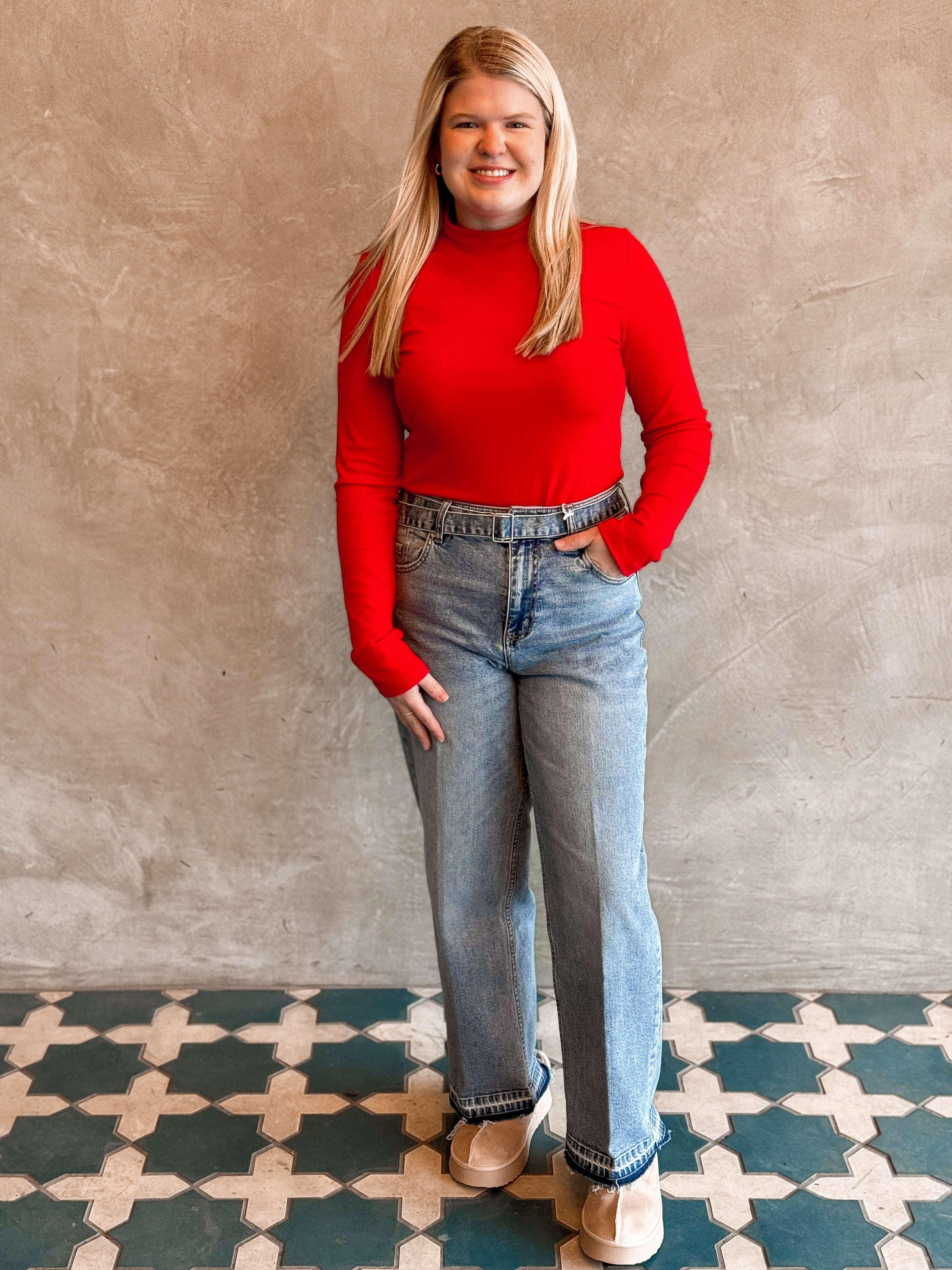 Take your basic collection to the next level with this timeless long sleeve features in a fitted, ribbed knit fabric with a mock neckline. Lovely for layering up or simply styling solo, this is such a staple piece to add to any outfit!