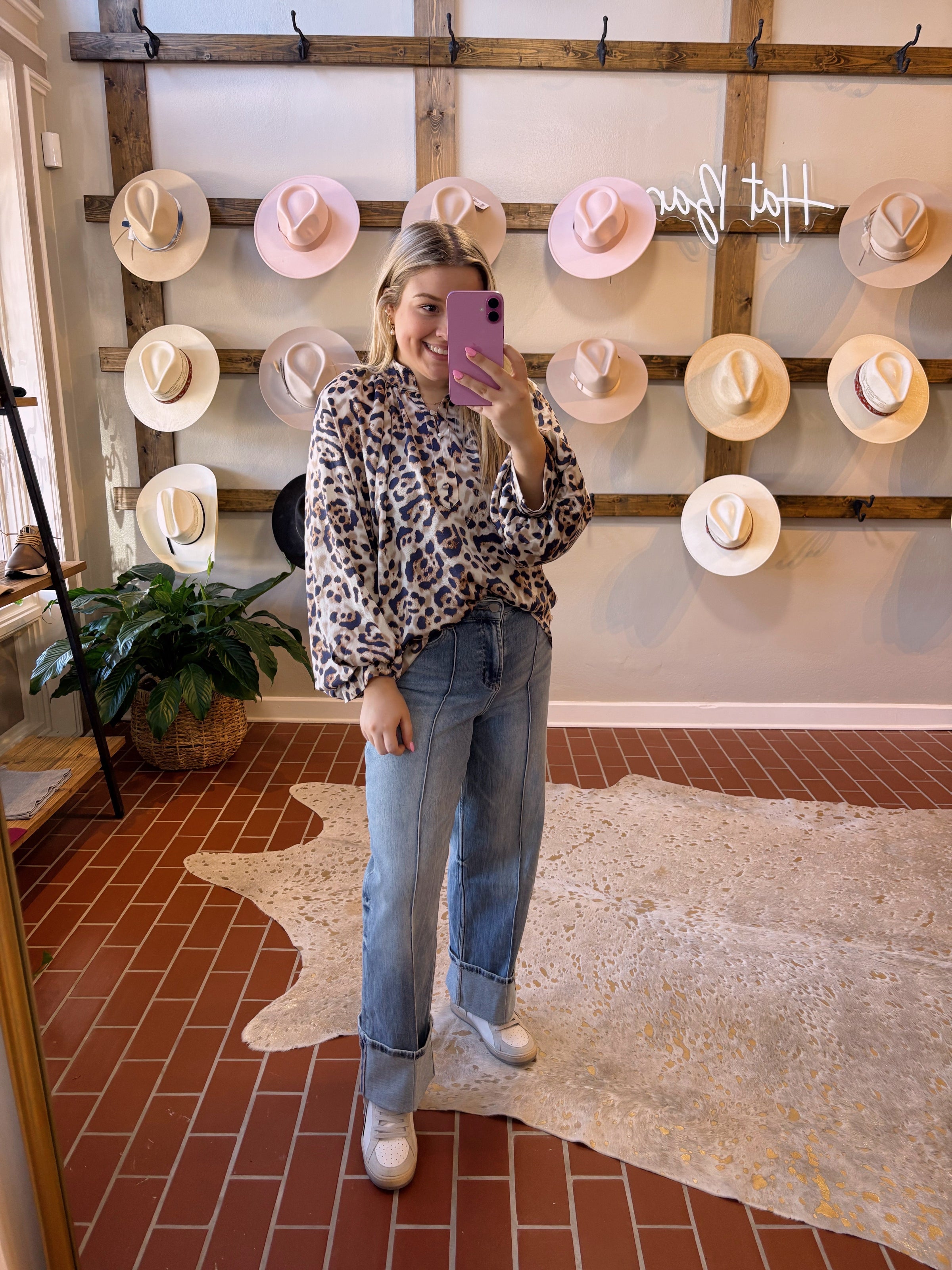 The Lauren Leopard Top blends bold style with effortless versatility. Its eye-catching leopard print and flowy bubble sleeves add a touch of flair, while front button details elevate the look. Dress it up with tailored slacks for a polished outfit or keep it casual with your favorite denim. Perfect for any occasion, this top brings both comfort and confident style to your wardrobe.