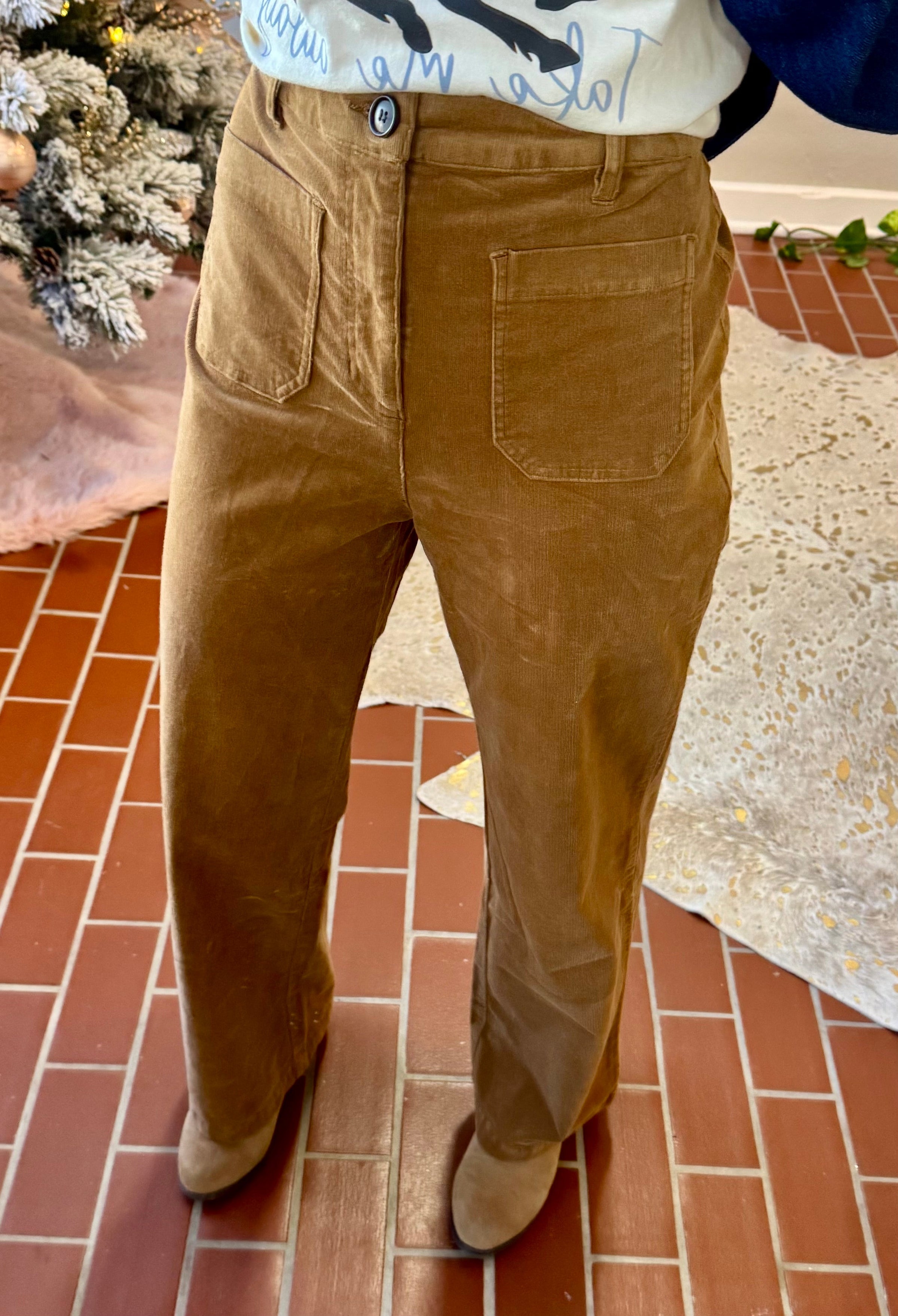 Anabel high rise wide leg pant crafted for a relaxing comfortable fit, blending effortlessly with any wardrobe. The corduroy with utility pockets is versatile and perfect look for any occasion with ease of movement and a flattering for a timeless ensemble.