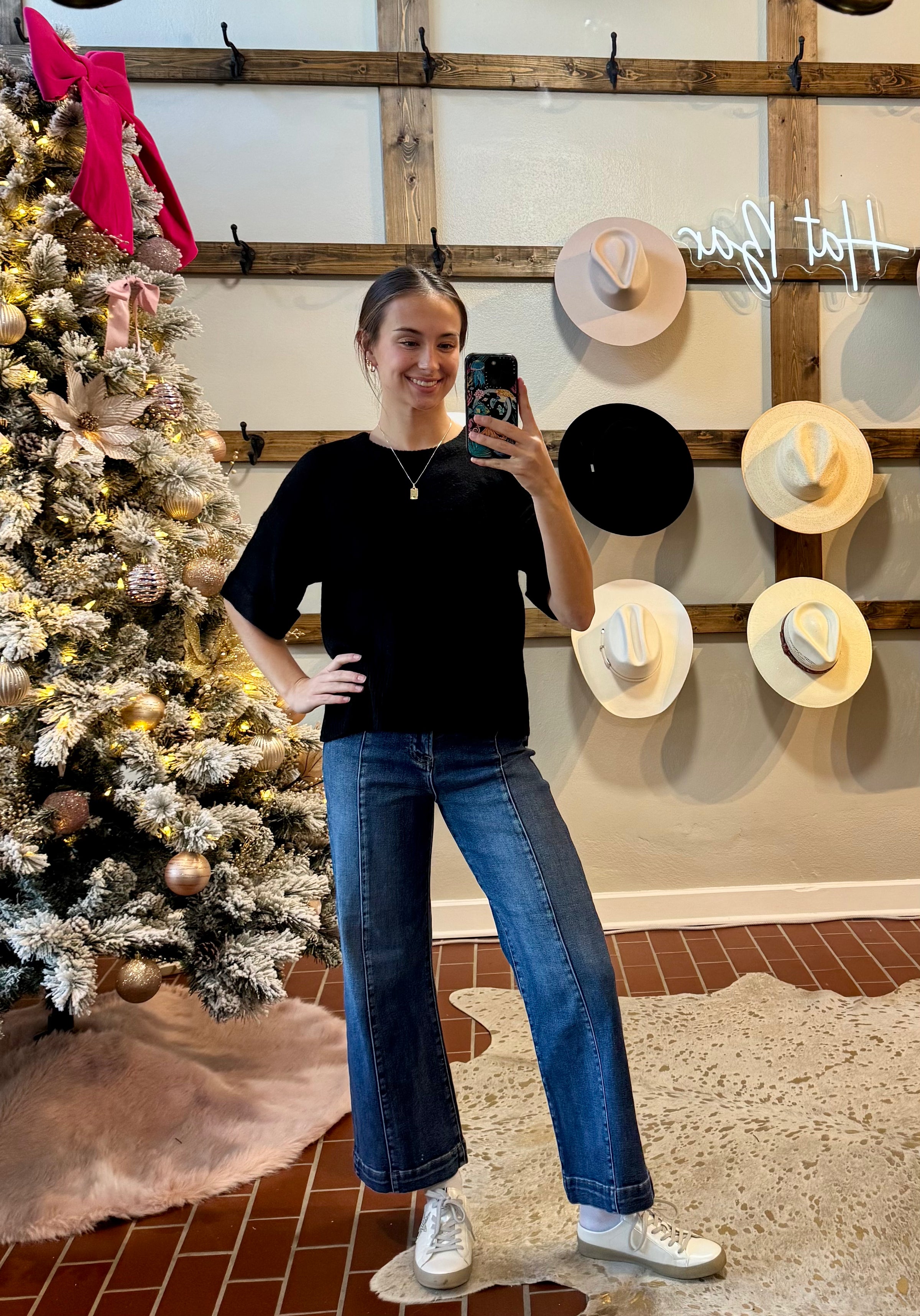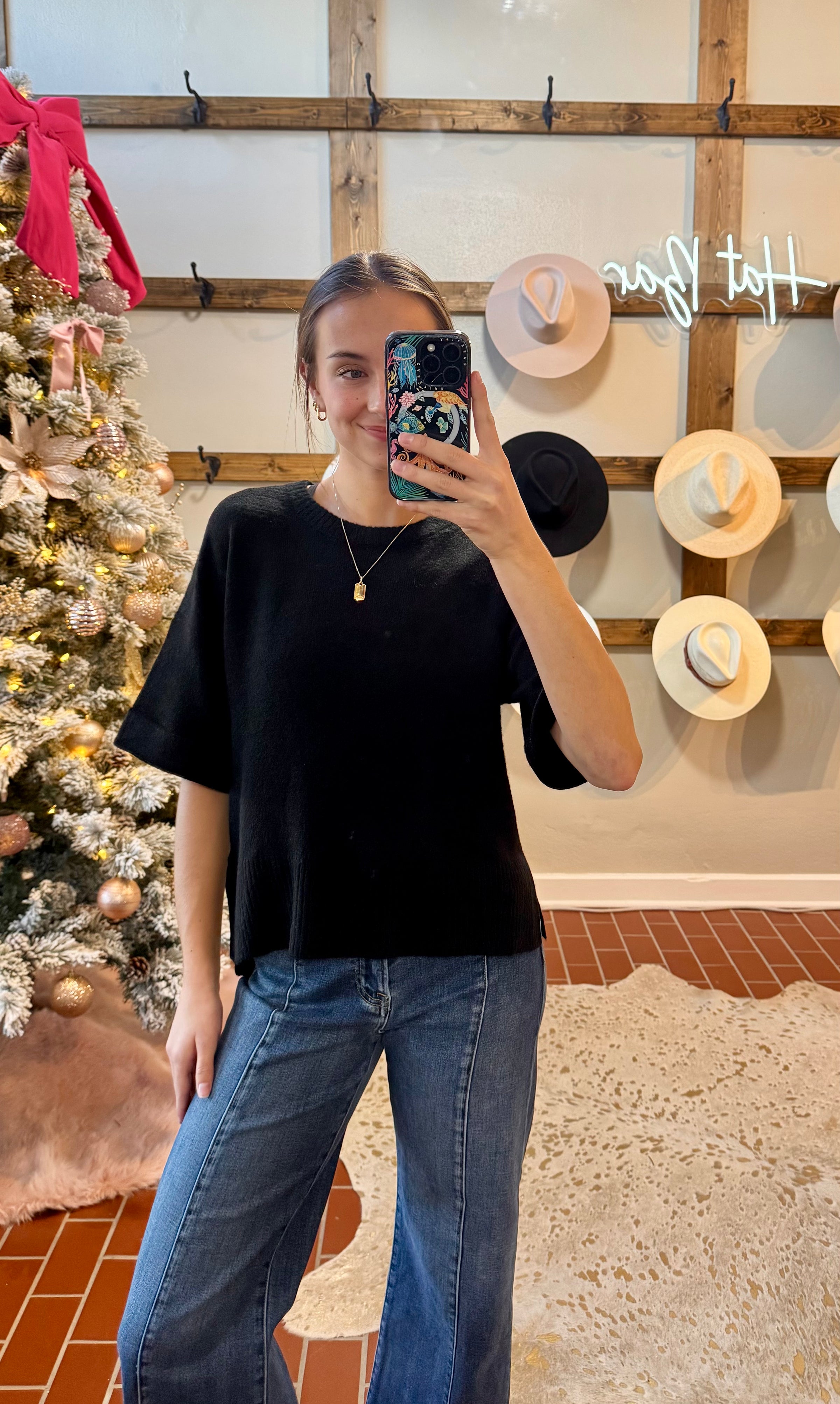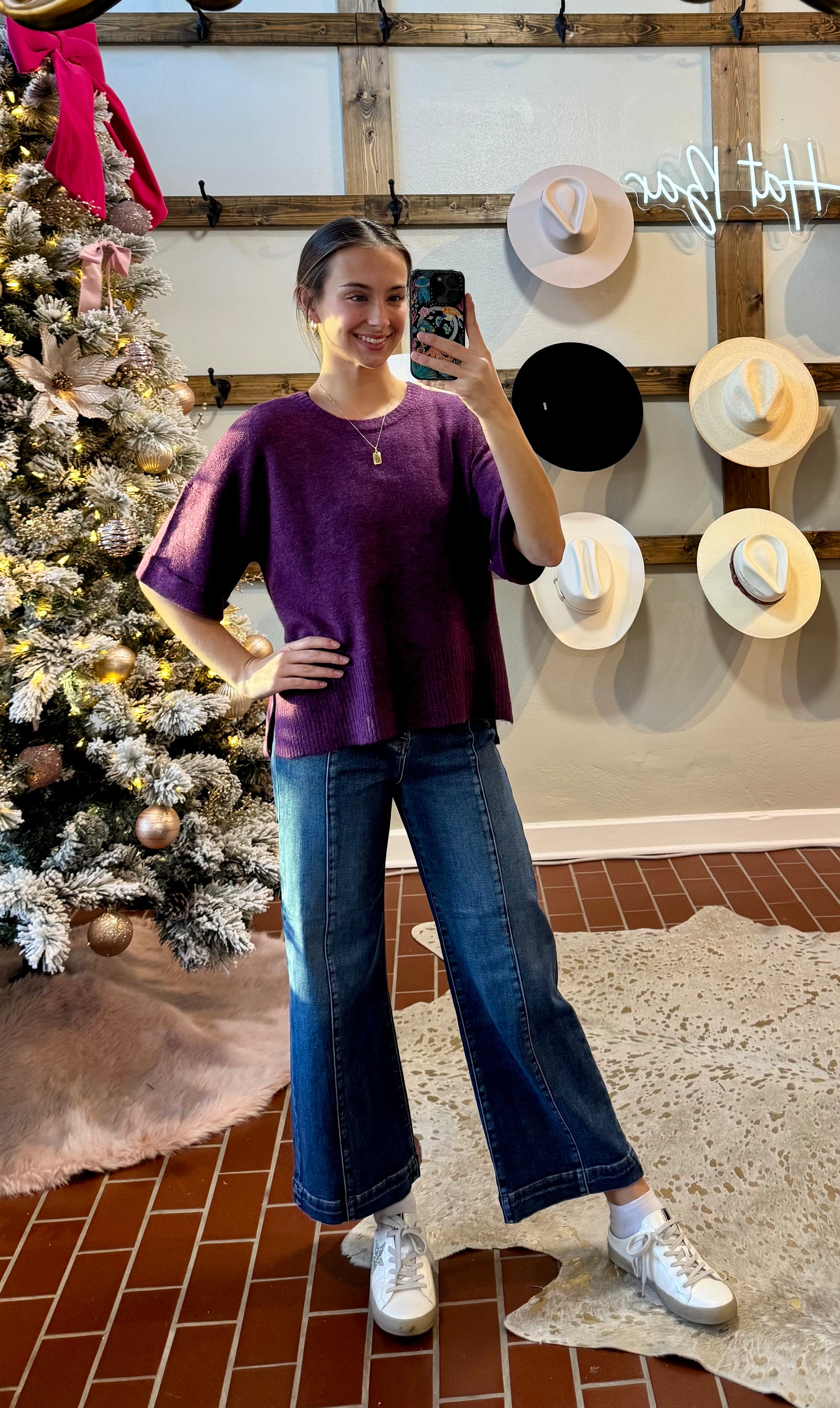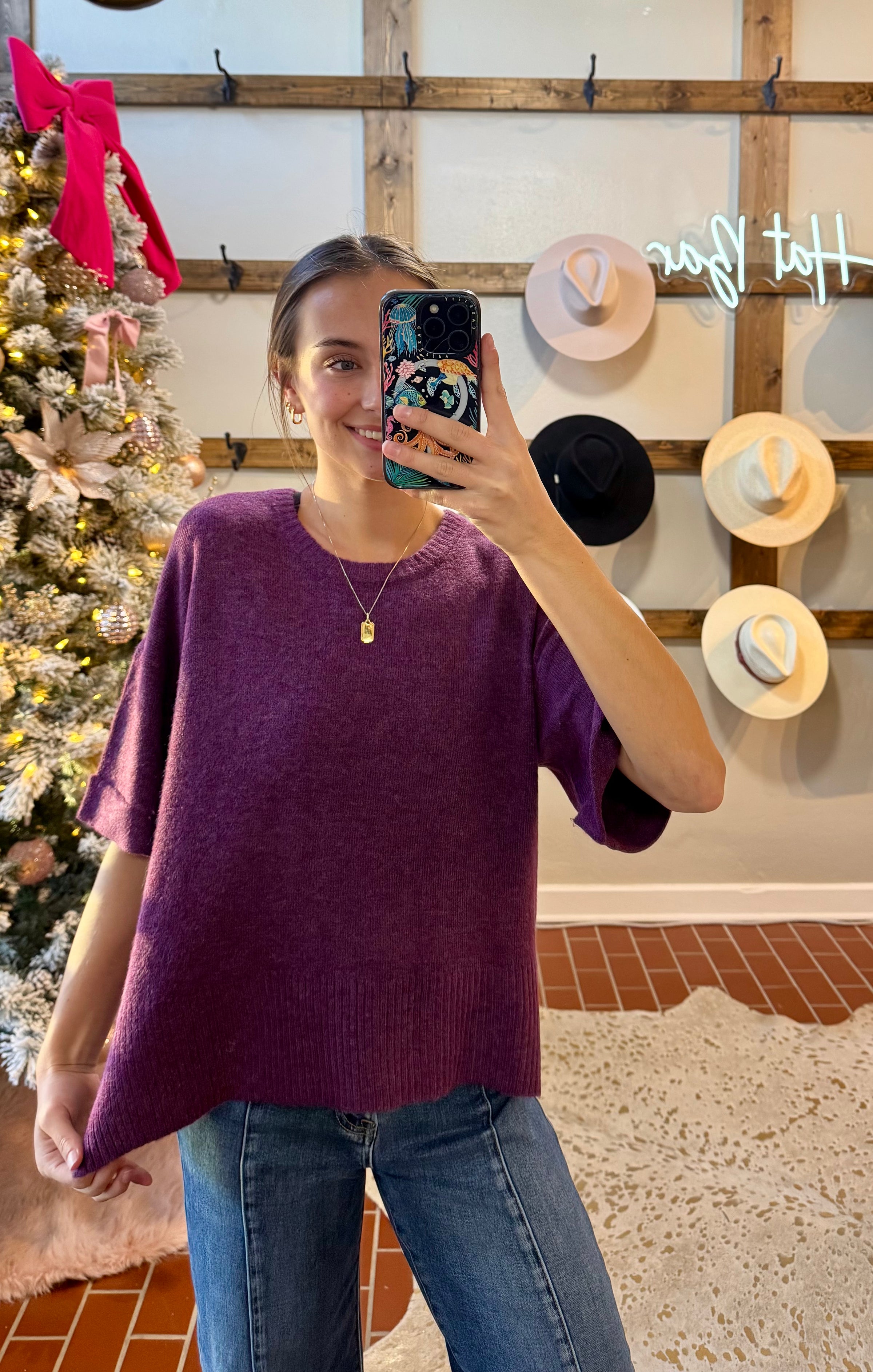 Timeless Catrina short sleeve crew neck sweater offers a refined blend of comfort and style. The seasonal hue adds a pop of vibrant elegance to your wardrobe. It's the ideal choice for layering or wearing alone, making it a versatile staple for any season. Perfect for casual or dressed-up occasions, combining simplicity with sophistication.