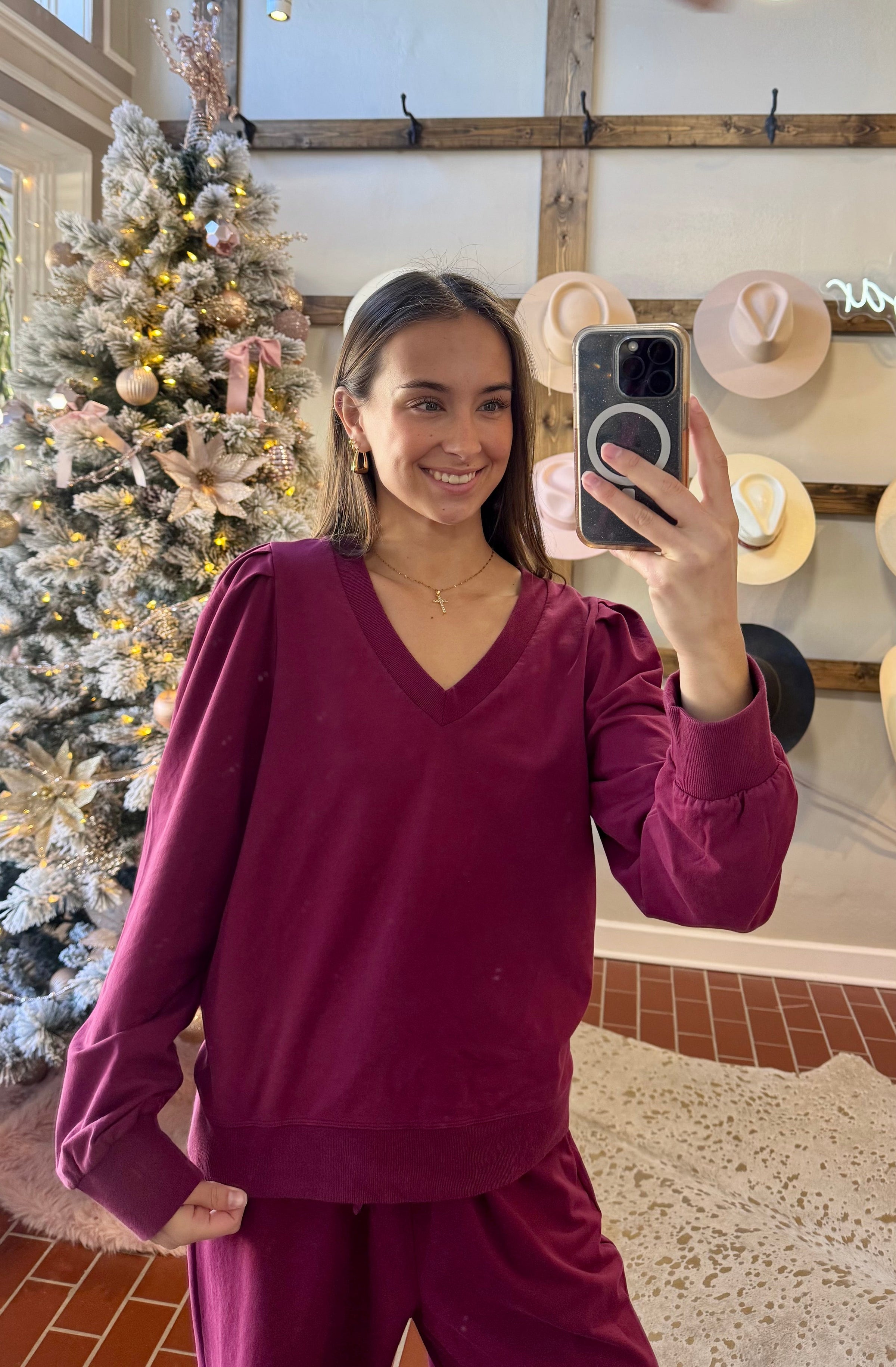 Timeless Sammi v-neck sweatshirt, featuring pleated long sleeve perfectly crafted for unparalleled style. Imbue a chic, elevated touch, ideal for both casual outings and more polished affairs. Its versatile design effortlessly pairs with tailored trousers or your favorite denim for a contemporary yet classic look. Feeling fabulous comes as naturally as looking stunning.