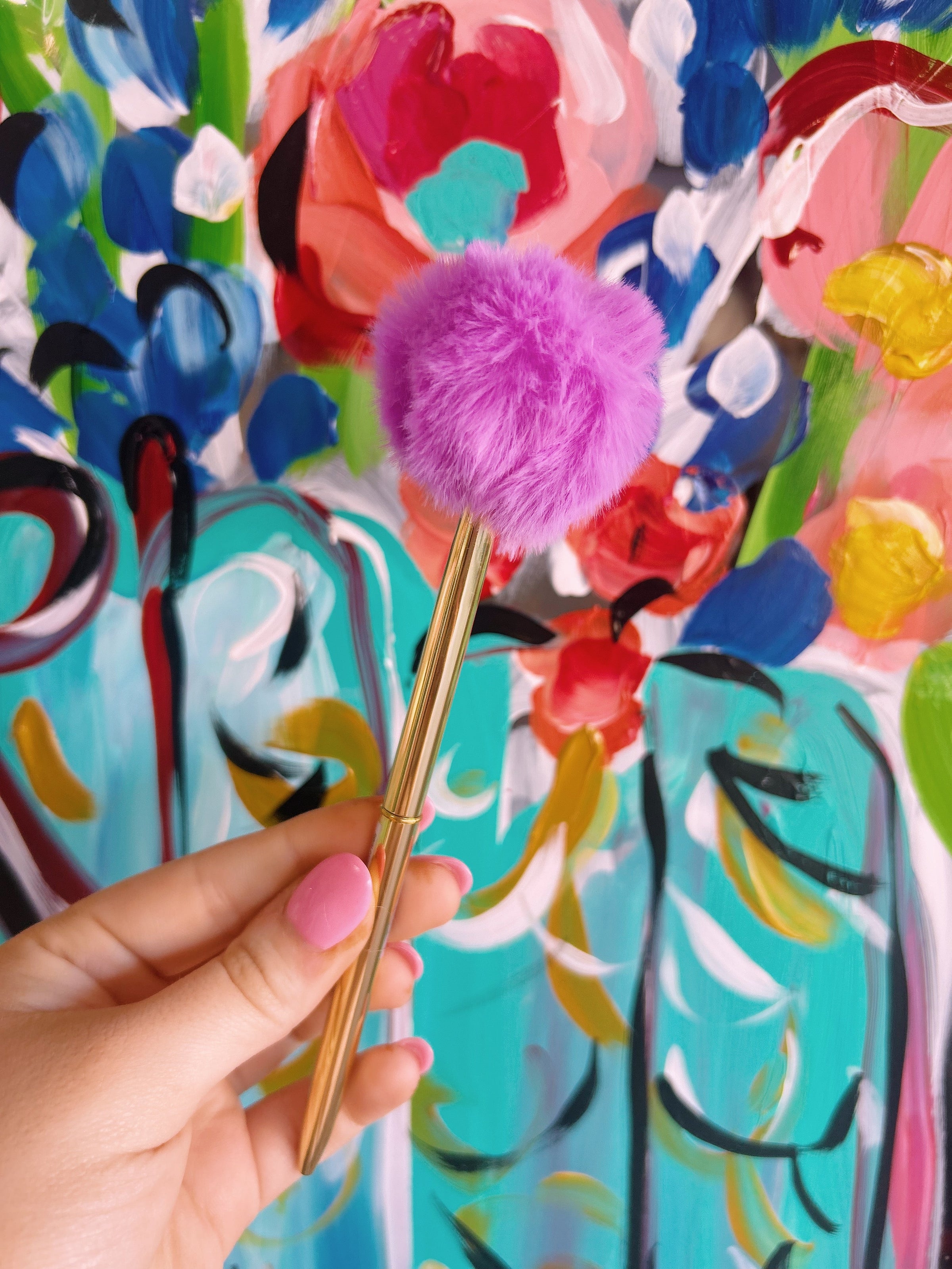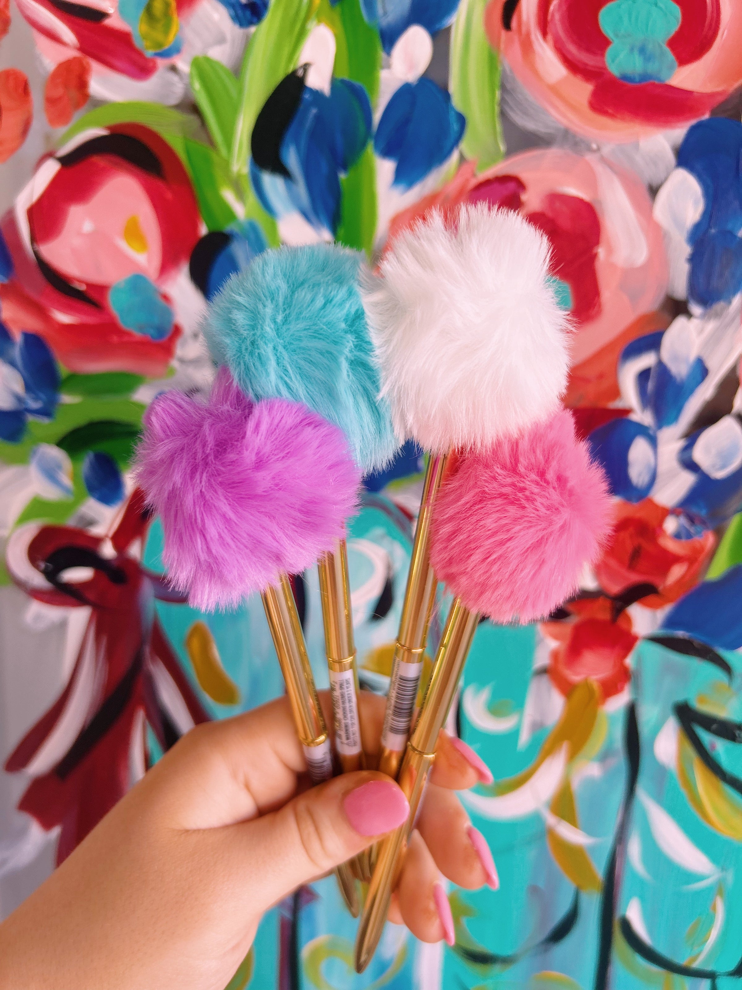 Add some whimsy to your writing with our Pom Pom Pens. The gold barrel and black ink provide a sleek writing experience, while the adorable, soft pom poms come in a range of delightful colors.